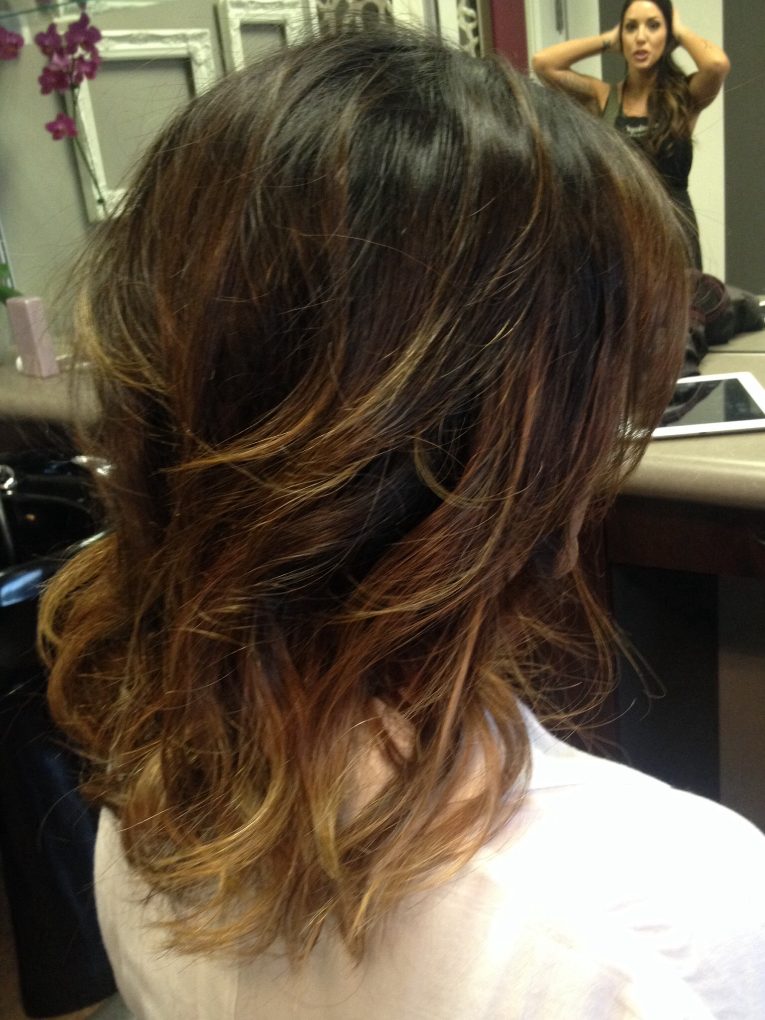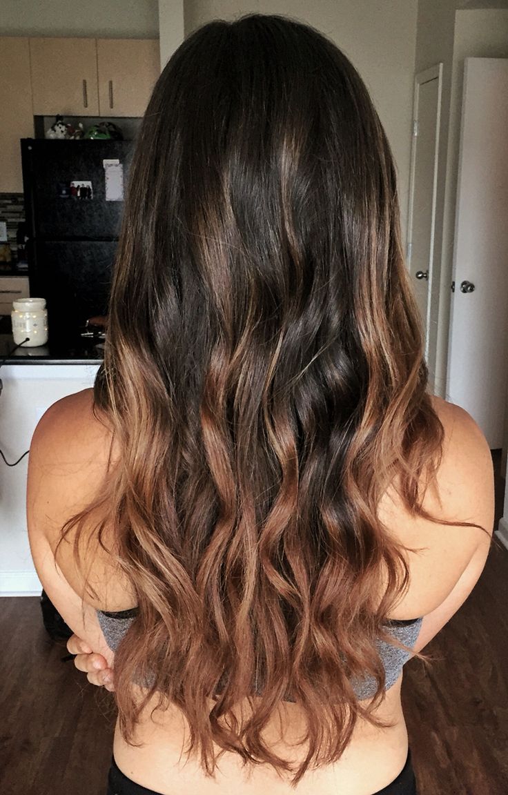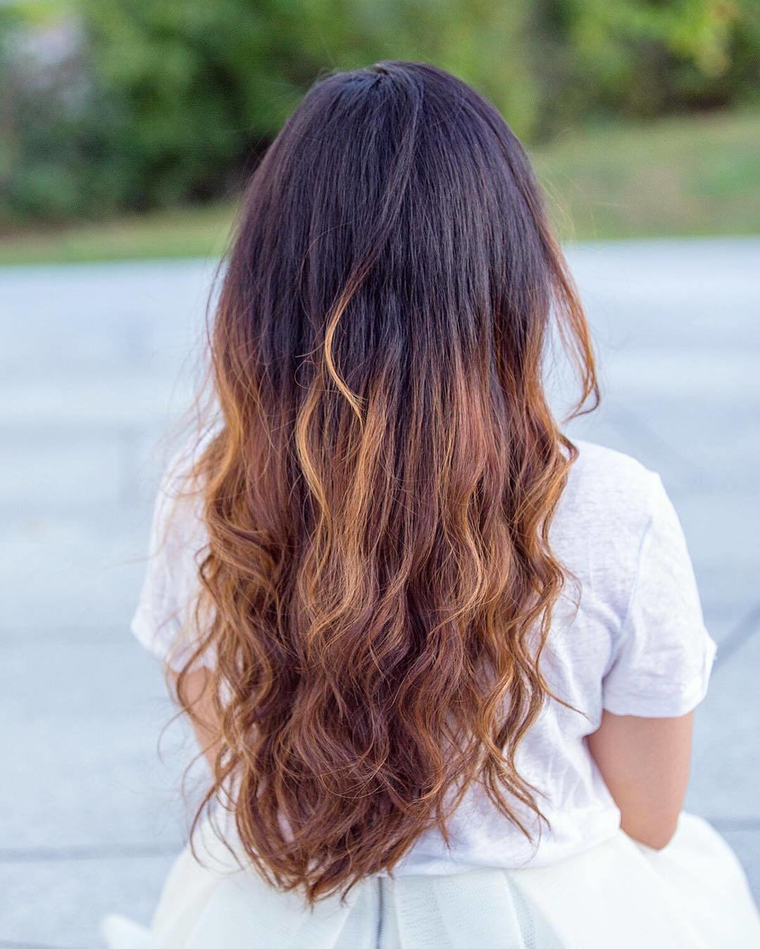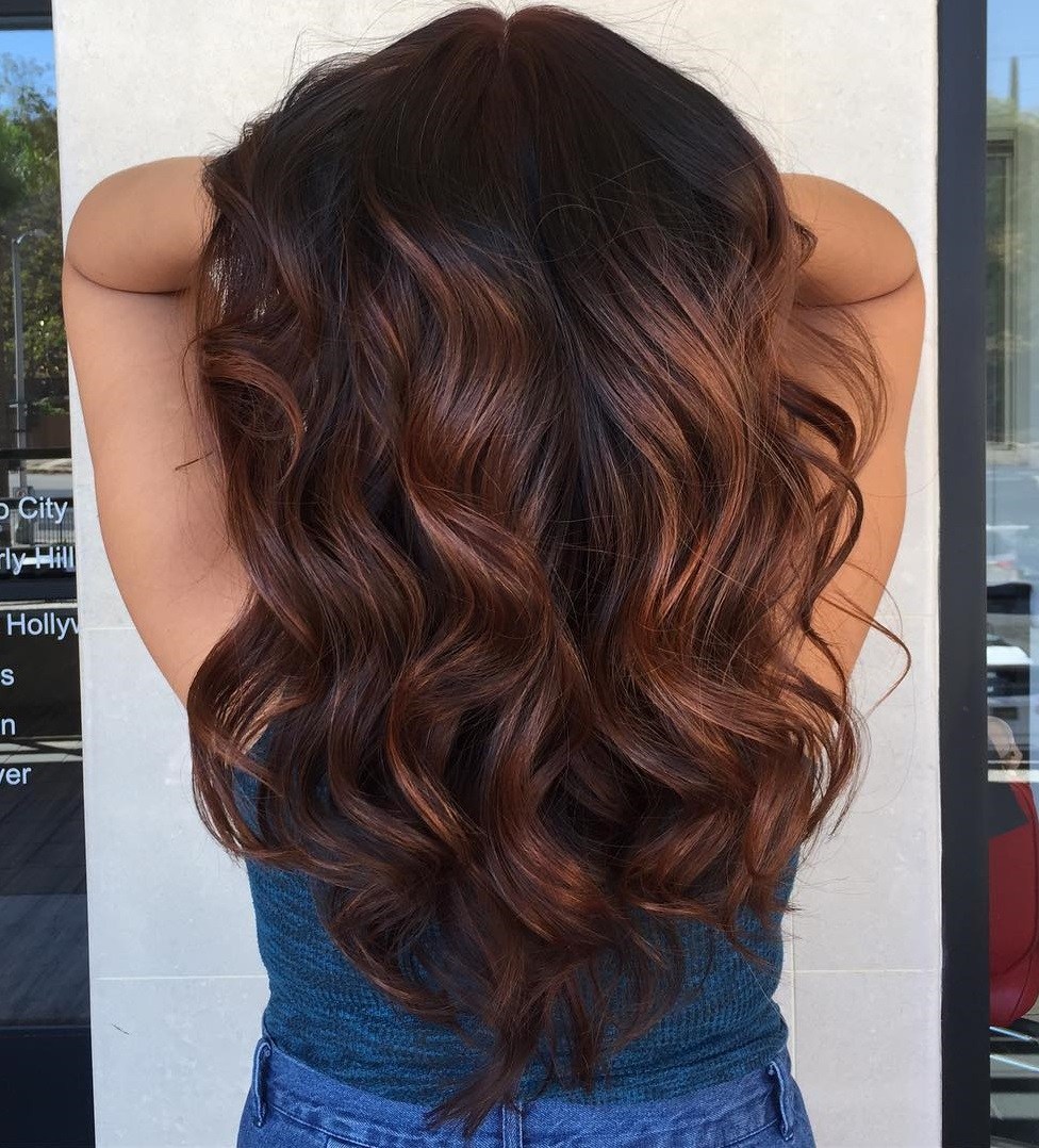 Vous avez de la chance si vous avez les cheveux noirs qui tombent en dessous de vos épaules. À cette longueur, les débordements de lumière semblent harmonieux et aussi naturels que possible. La seule exécution indépendante est quelque peu compliquée, car vous ne pouvez pas faire face à la masse seul.