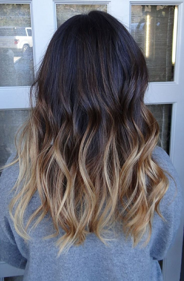 Il existe également des variétés de balayage spécifiquement pour les brunes, car le noir naturel nécessite une approche particulière. Dans ce cas, la transition peut être à la fois floue et nette. Le début d'application de la composition varie également de toute la longueur jusqu'aux pointes uniquement. Faisons attention aux principaux types.