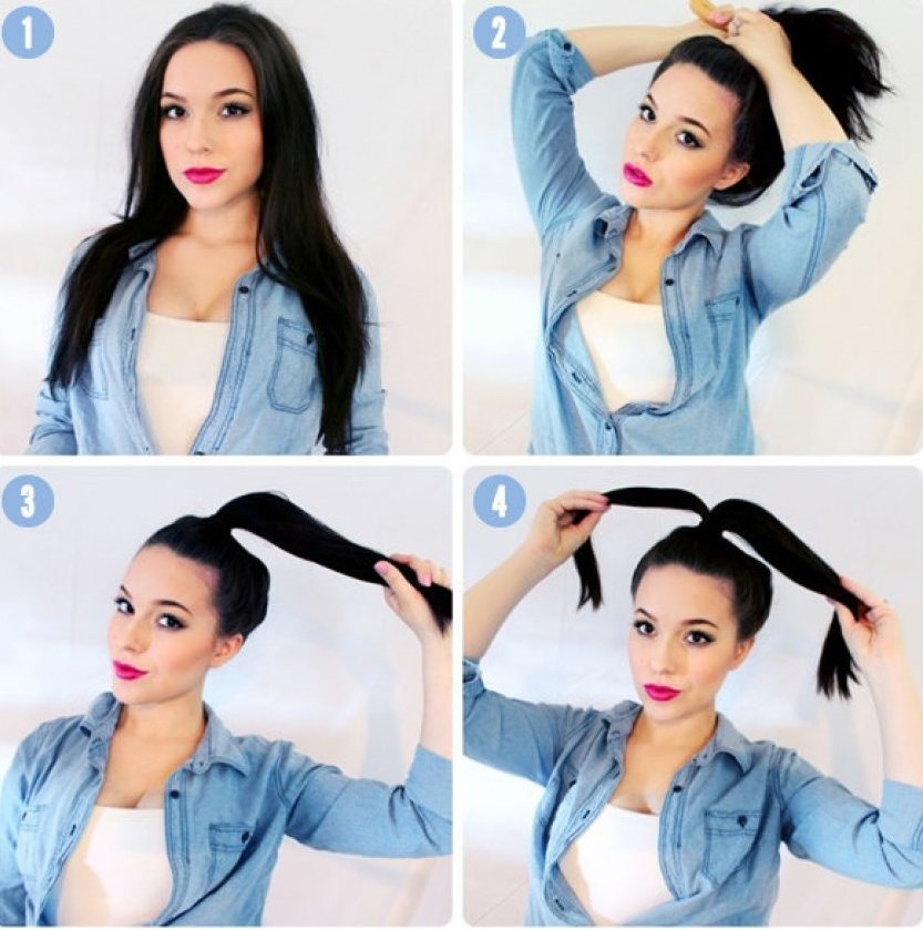 - Измийте косата си и подсушете с кърпа, докато стане влажна. Вържете опашката в задната част на главата, така че малка нишка да остане по долния контур.