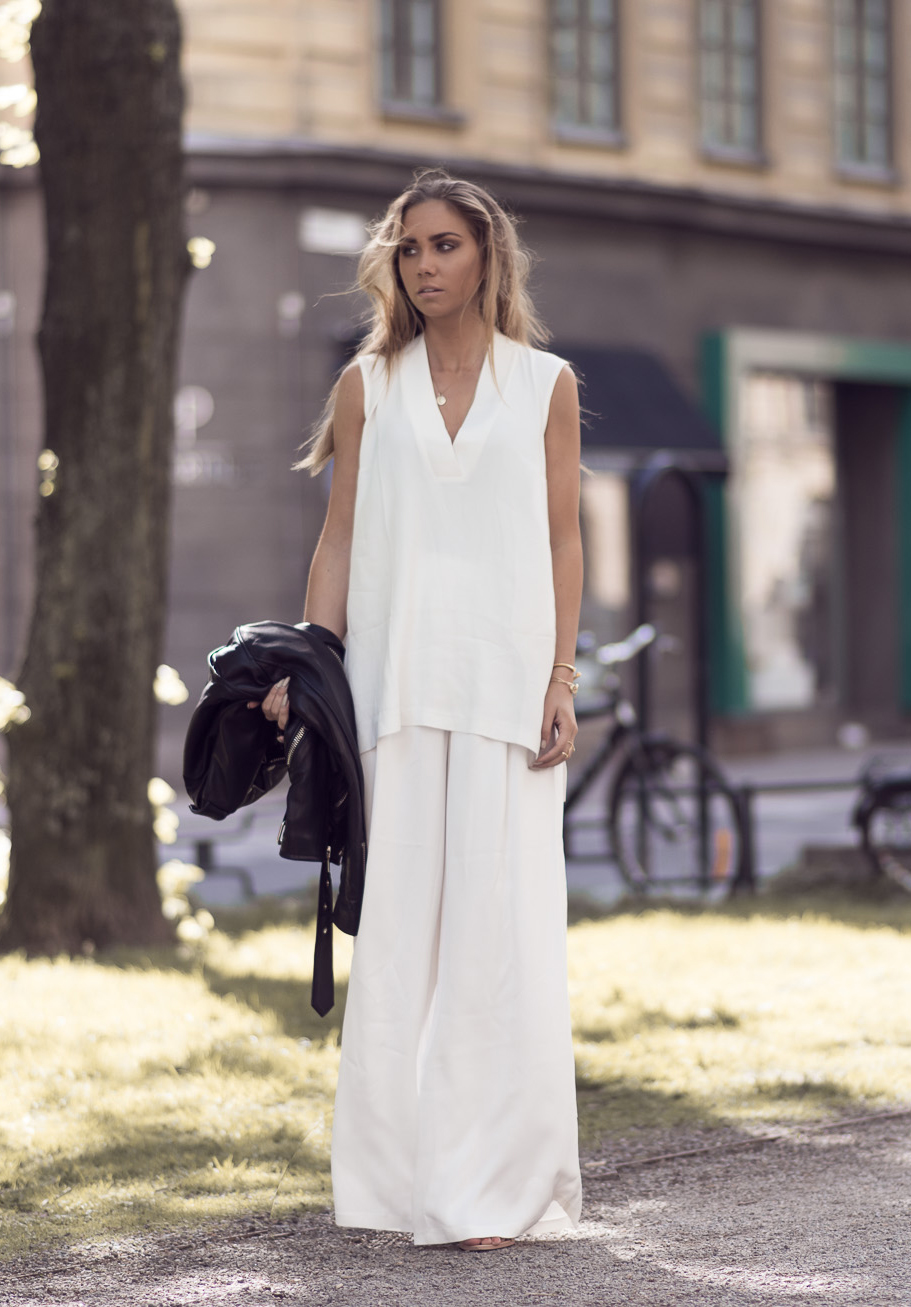 - Комбинации с поли с максимална дължина и панталони с широки крачоли.