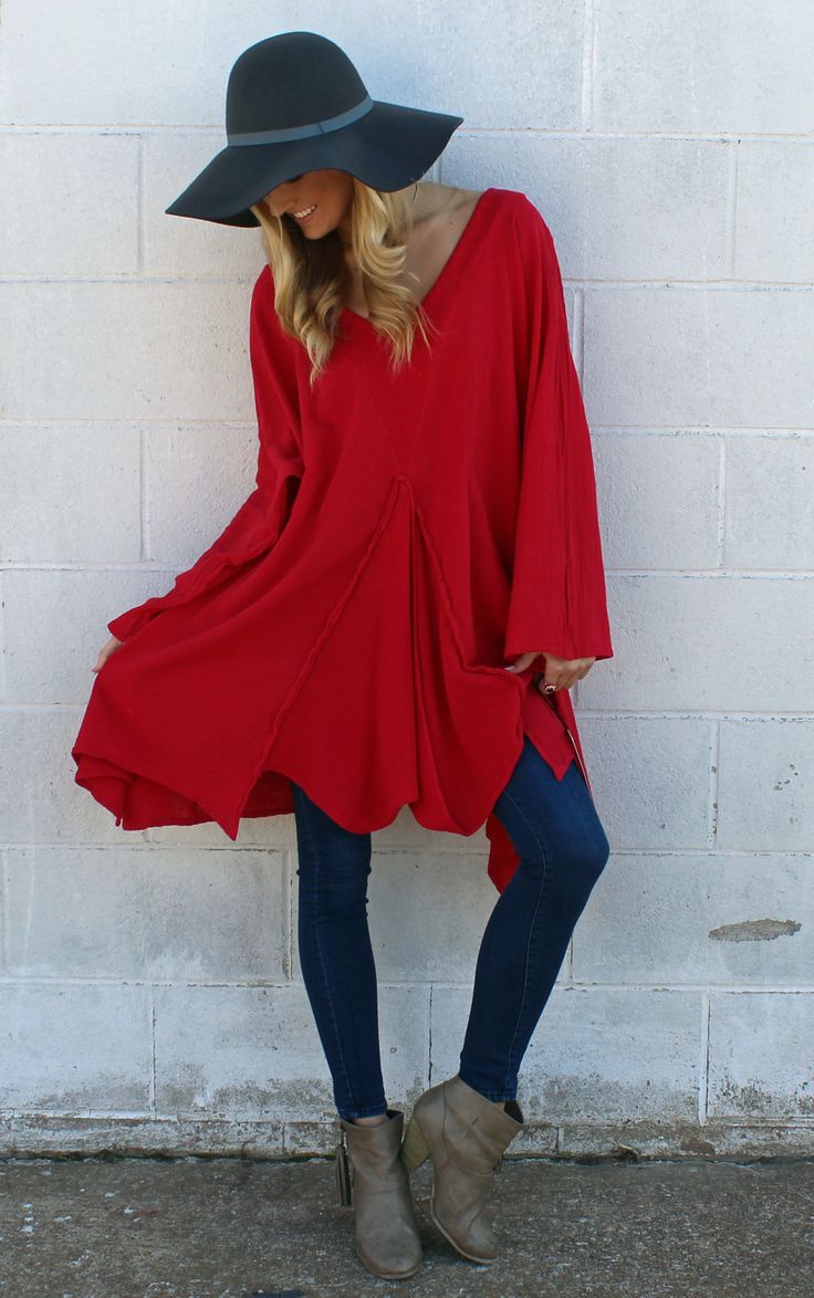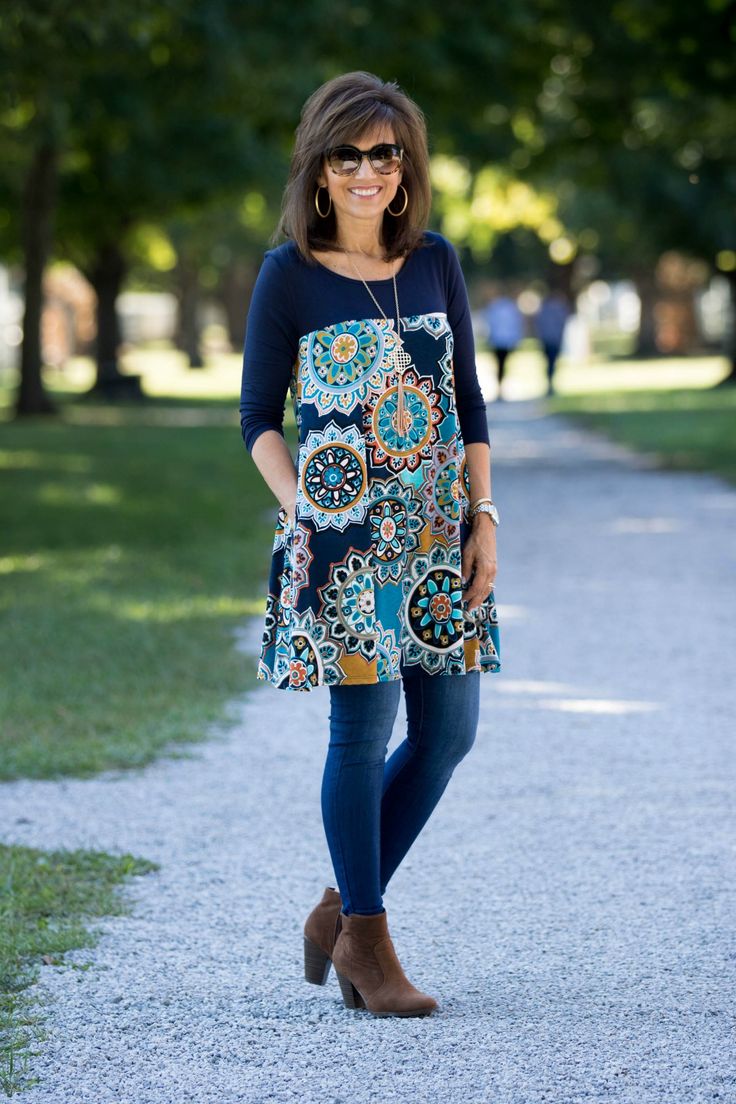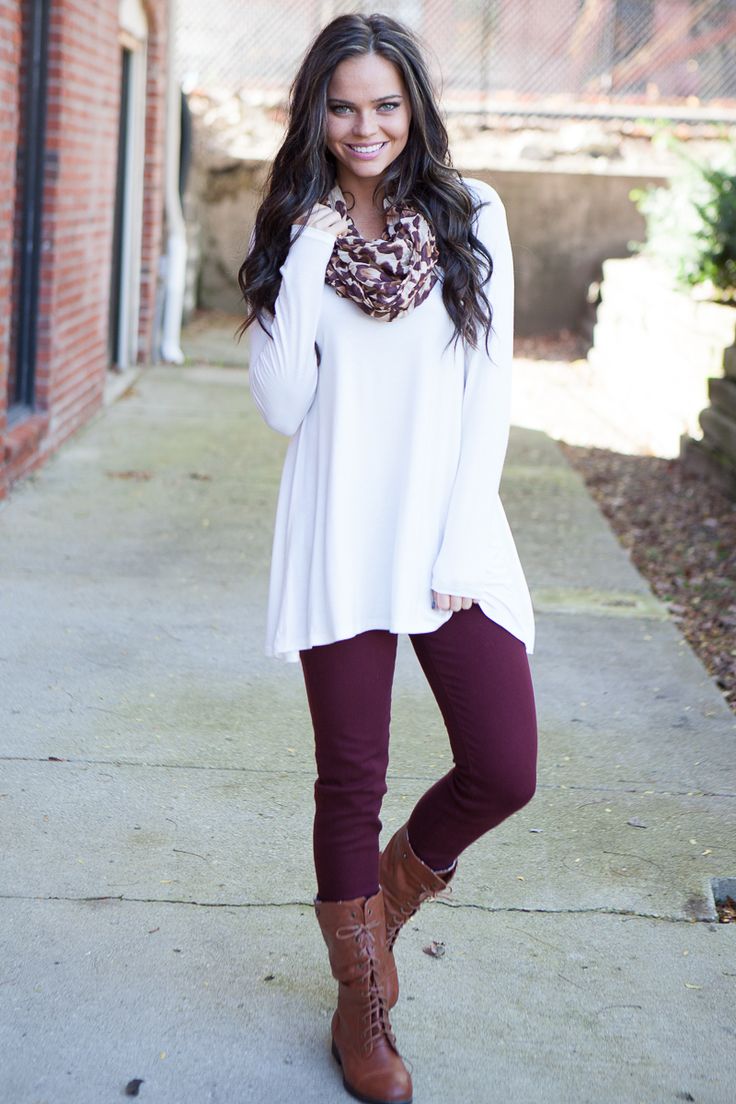 С какво да носите модни туники в навечерието на зимата? Всички опции от класически широки панталони до тесни клинове с необичаен принт са добри. Ръкавици, шал за шнур и вълнена шапка ще допълнят топлата визия.