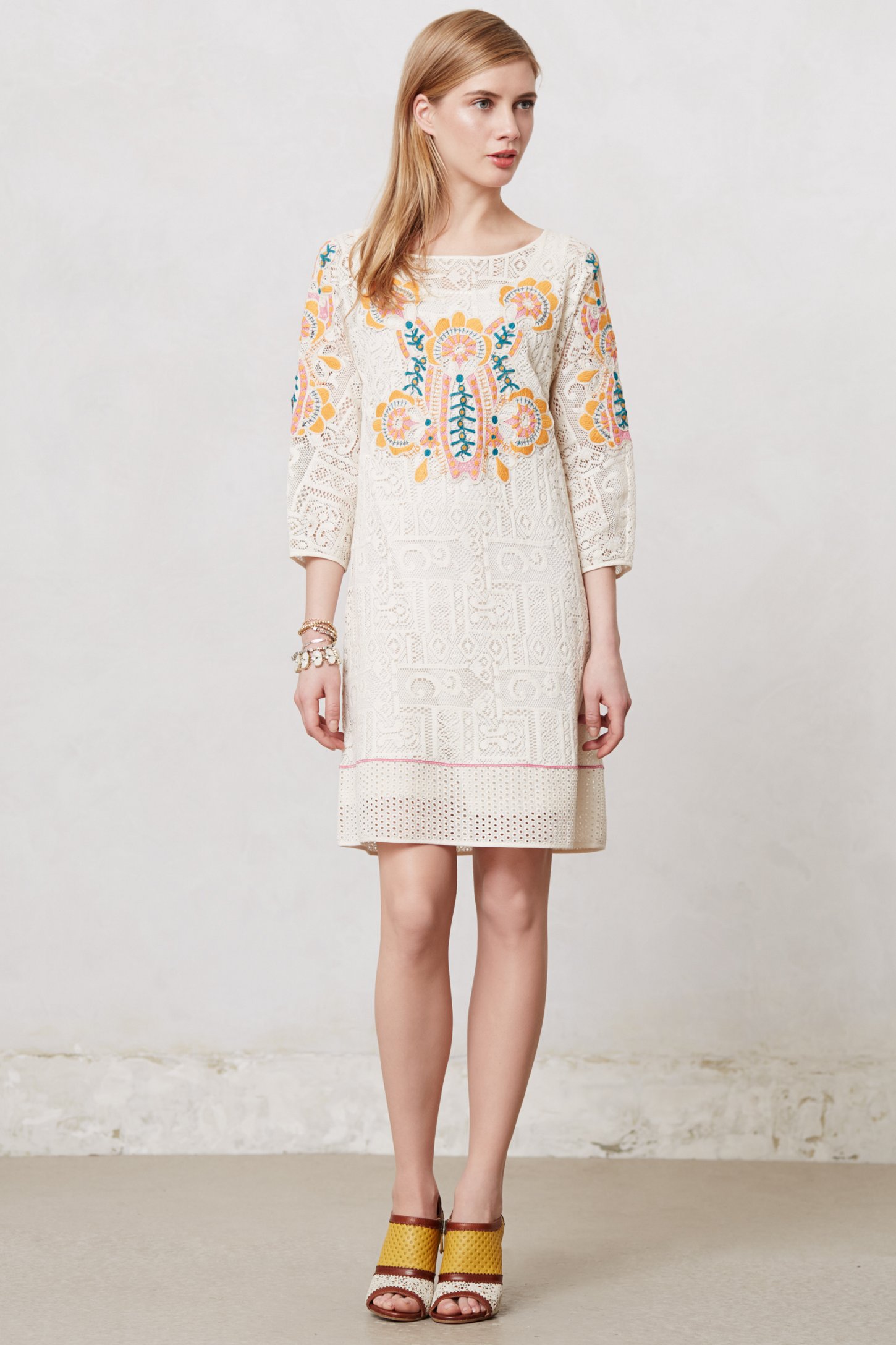 Най -търсените материи са лен и памук. Сред техните предимства са ниската цена и способността да се поддържа оптимална температура. Що се отнася до стиловете, тук трябва да има трапец. И за да изглежда кройката оригинална, дизайнерите щедро я надариха с кройки и дантелени вложки. Единичните опции, разбира се, са добри, но такива декоративни елементи по-дълбоко изразяват женствената чувственост и чар. Ажурните модели са чудесни за пътувания до горещи страни, защото напълно съответстват на плажния стил.