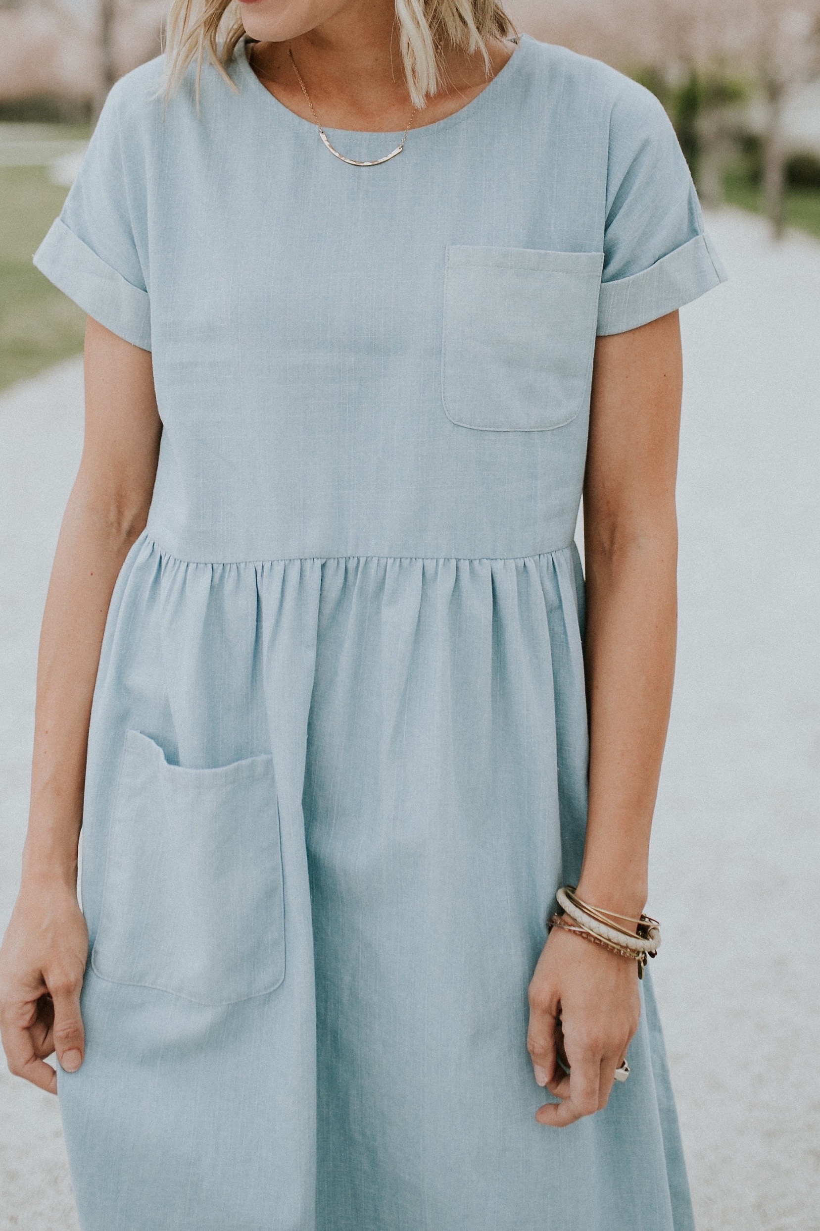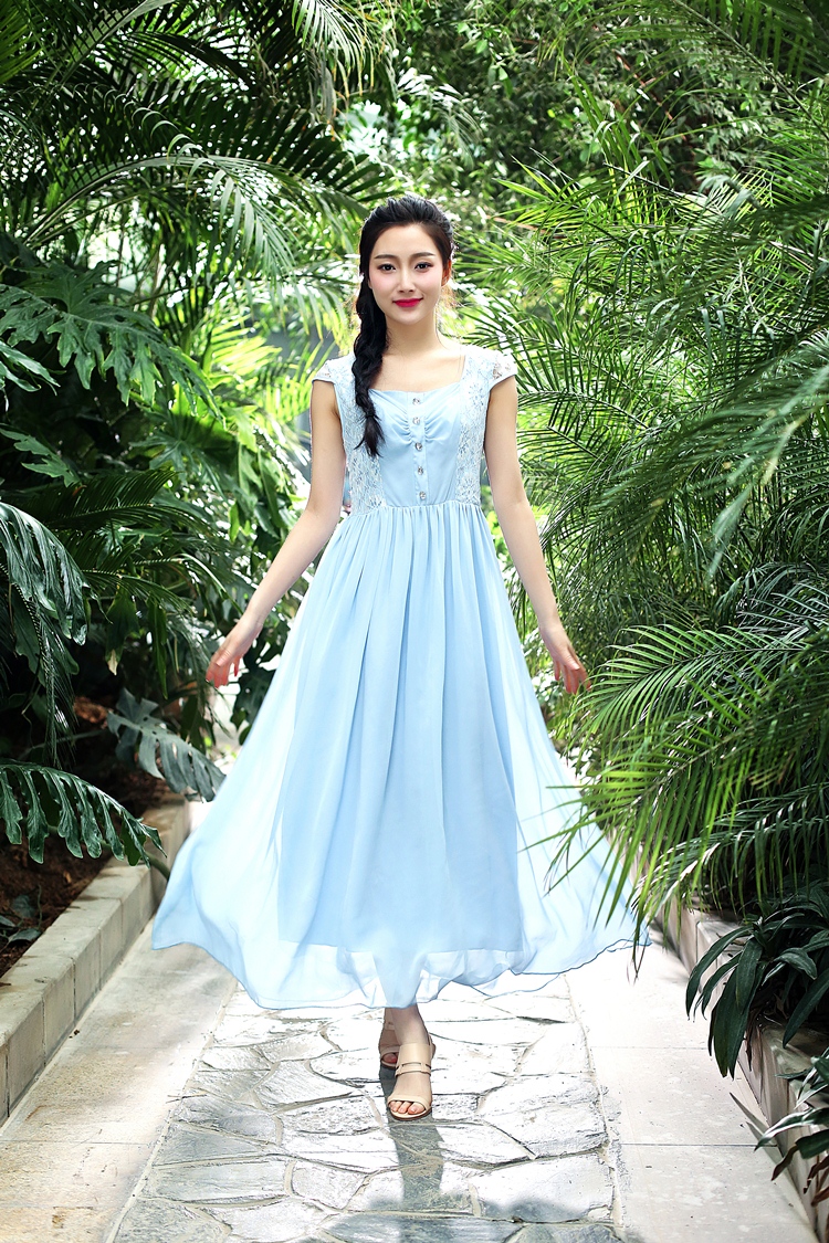 - Un vestit de color cel ajuda a crear un aspecte femení.