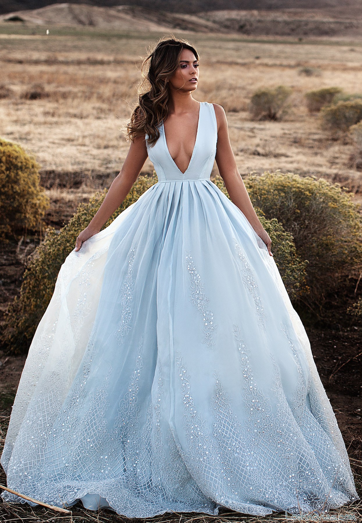 Les núvies ara no difereixen en el conservadorisme del caràcter, per tant, s’esforcen per trencar els estereotips i els fonaments de la societat en el seu propi casament. En lloc de les noies blanques com la neu que estem acostumats, cada vegada trien més la celestial. Fa que la imatge sigui més lluminosa i original. A més, aquesta paleta rejoveneix increïblement la pell i emfatitza l’aspecte florit d’una senyoreta.