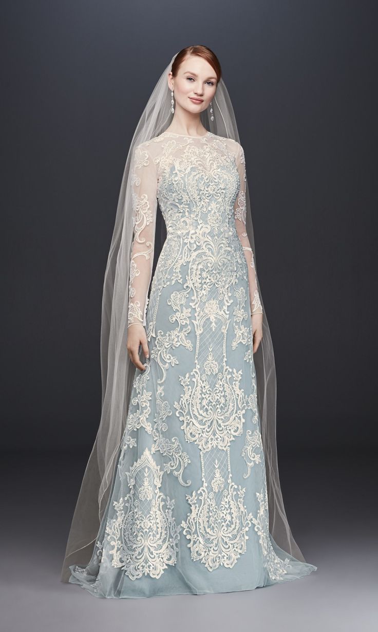 Imagineu-vos encaixos blaus, increïble, oi? En general, les insercions translúcides fabricades amb materials lleugers i sense pes estan en tendència ara. Un lleuger toc de coqueteria no farà mal, sinó que, al contrari, despertarà els sentiments del seu nuvi. I aquells que vulguin semblar originals, però que no s’allunyin dels clàssics cànons, són convidats a considerar solucions en un to blau suau, que amb prou feines és visible als ulls de la gent del voltant.