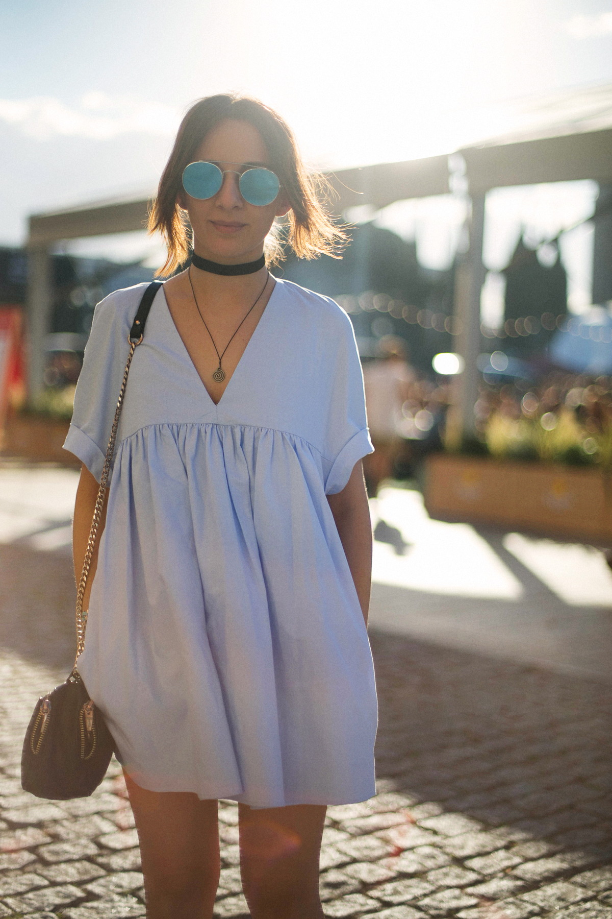 La majoria de les dones modernes simpatitzen amb l’estil informal. Per tant, no és d’estranyar que els vestits blaus, plens de tendresa i coqueteria, es portin bé amb jaquetes de pell, jaquetes de cuir, bufandes, mocadors i sabates planes. Alguns fins i tot juguen bé amb l’eclecticisme, combinant plisats amb faldilles esportives.