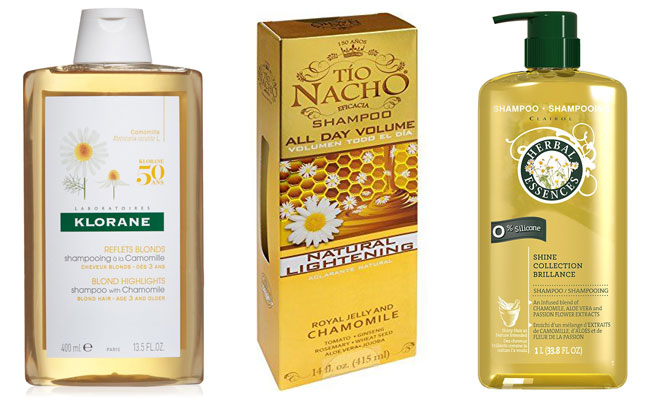 - Decocció de camamilla. A més de la seva funció directa (alleugerint aproximadament un to), també resol altres tasques, en particular l'enfortiment i la nutrició, donant una brillantor natural i eliminant la sequedat.