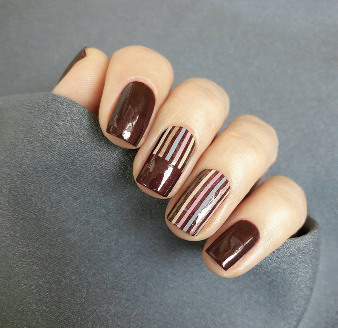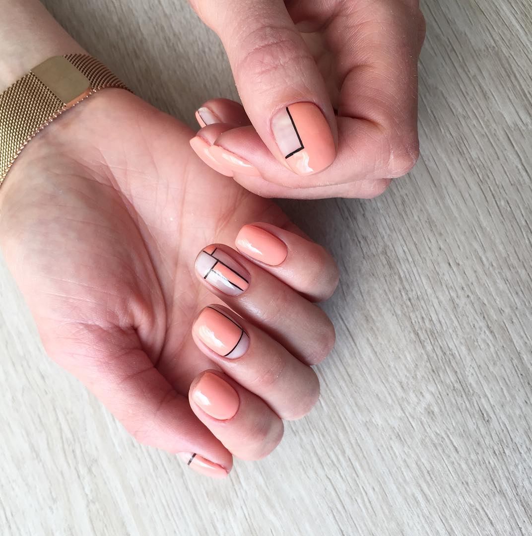 Una manera original i elegant de combinar creativitat i clàssics: una manicura amb ratlles. D’una banda, aquest art de les ungles no és trivial i crida l’atenció sobre el seu propietari. Per una altra banda, patró geomètric apropiat en qualsevol situació, des de l'oficina fins a una recepció de gala.