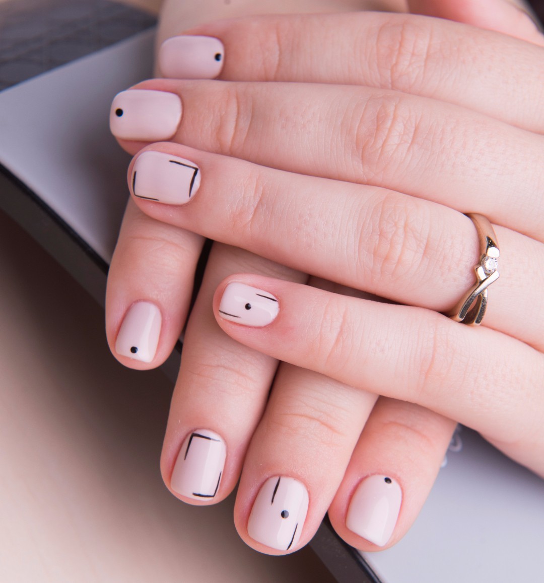 Per exemple, a l’estiu serà rellevant afegir geometria amb una imatge realista d’un brot tropical o fulla de palmera. I a l’hivern, es pot trobar un lloc en un dit per a un adorn de purpurina i per a un petit floc de neu o ninot de neu.