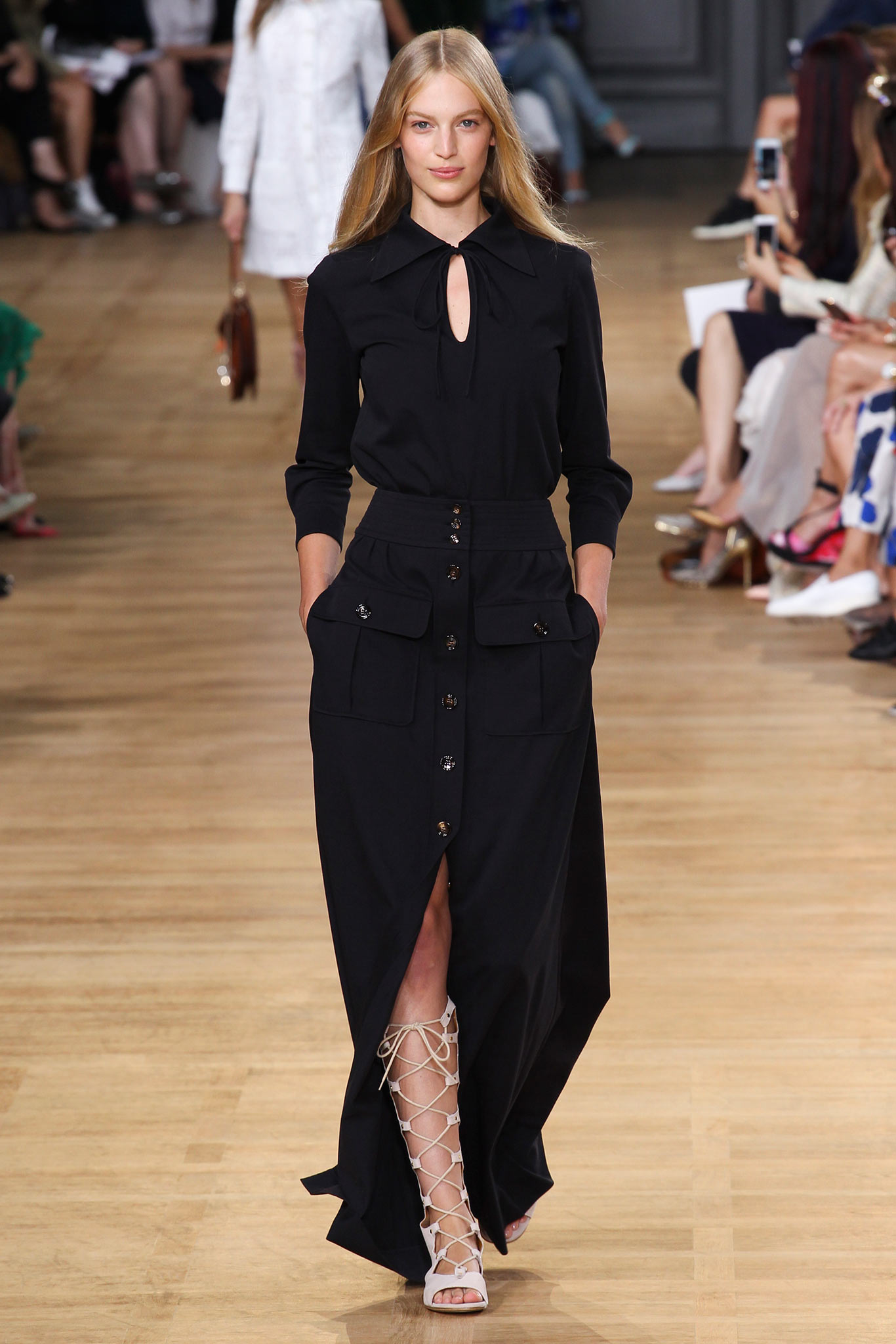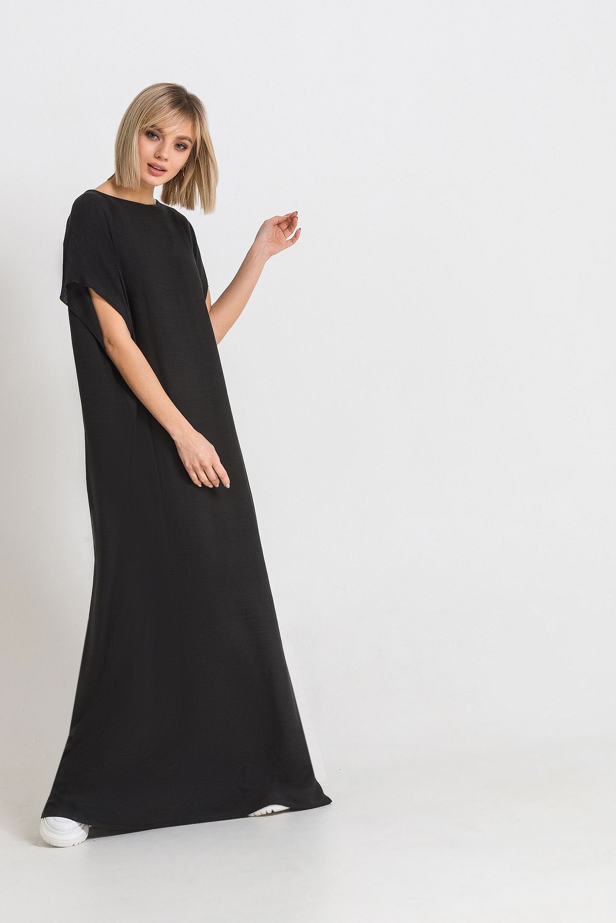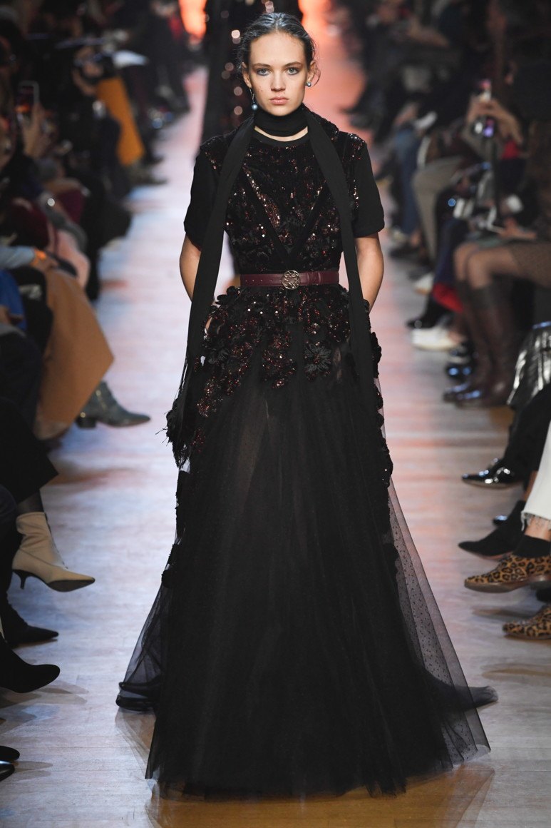 - Mousseline de soie donne de l'apesanteur et de la légèreté. La structure ne gêne pas le mouvement. Le look est complété par un maquillage naturel avec un fard à paupières fumé.