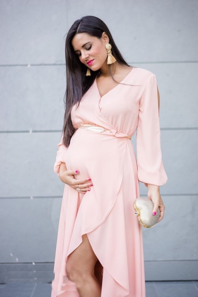 Na poznámku! Podívejte se blíže na věci s víceúrovňovým šitím, které mají více volánů, volánů a volánů. Sukně s dvojitou délkou se dobře ukazují: vpředu jsou zkrácené a vzadu se mění ve vlak. Chytlavé akcenty v druhé části šatů odvádějí pozornost od břicha: velkolepý rozparek, odhalená záda, nafouklé rukávy.