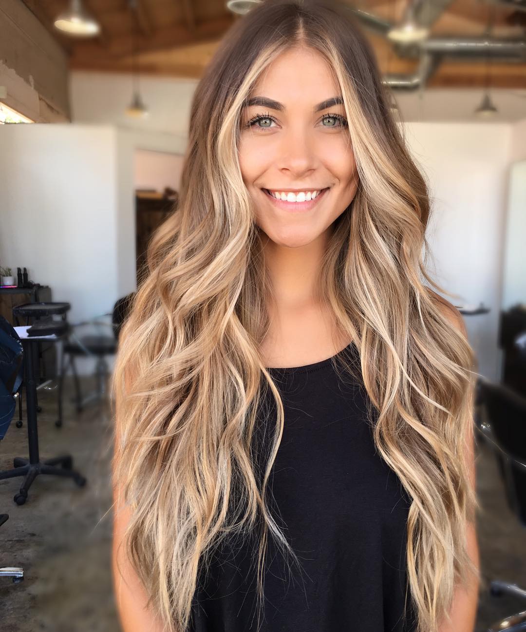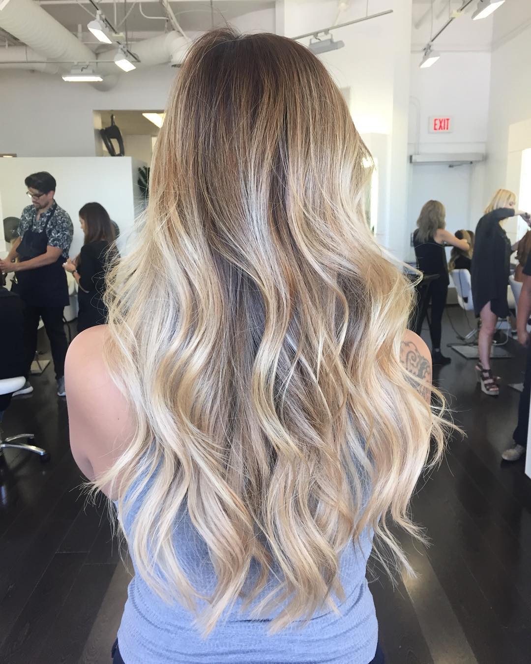 - Med ombre effekt. Som navnet antyder, involverer teknologien fusion af to metoder, men her vil antallet af anvendte forbindelser blive stærkt forøget. Det kaldes også en regrown bronde. I sådanne tilfælde er skødesløs lethed i frisuren et resultat af langt og omhyggeligt arbejde.