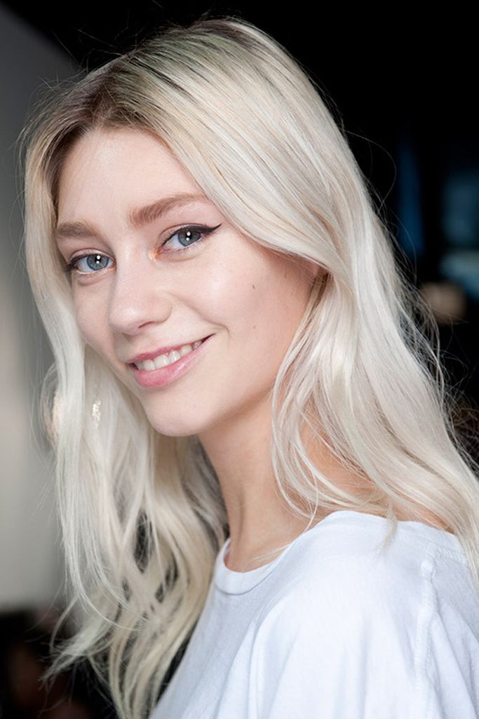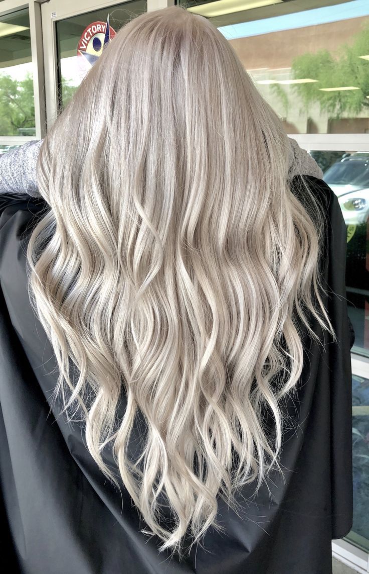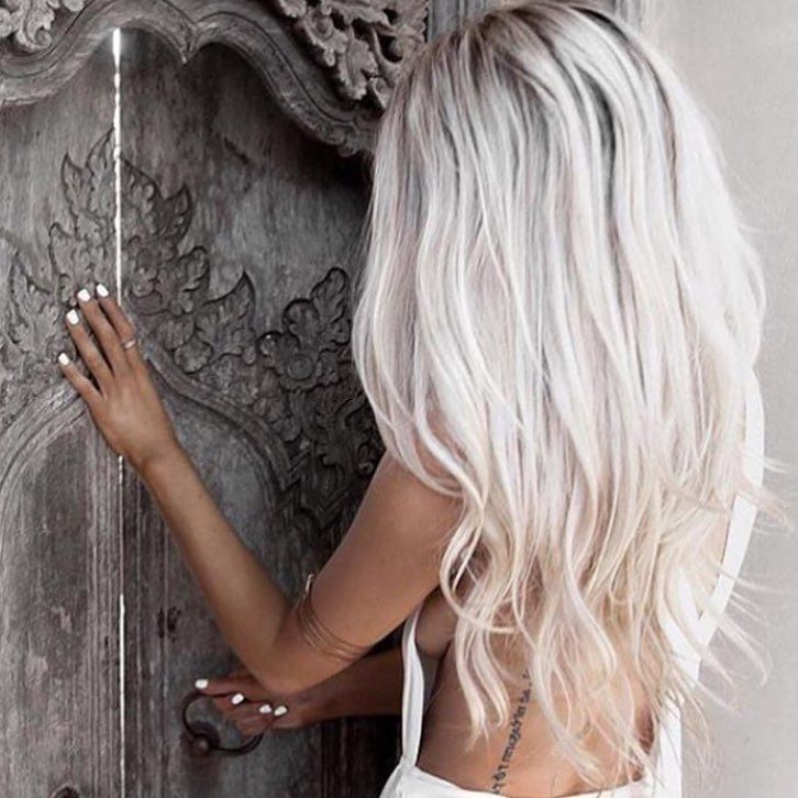 Wir erforschen einen perfekt weißen Unterton mit einem Perlenschimmer. Ein leichter bläulicher Schleier, fast unsichtbar, ist erlaubt. Sie spielt die Rolle der zusätzlichen Färbung, um die vulgäre Gelbfärbung zu beseitigen. Aschestränge unter grauem Haar sind grauer, und Platin ist immer rein, weißlich. Erinnern Sie sich an die großartige Emilia Clarke und ihre Daenerys in der Kult-TV-Serie Game of Thrones.