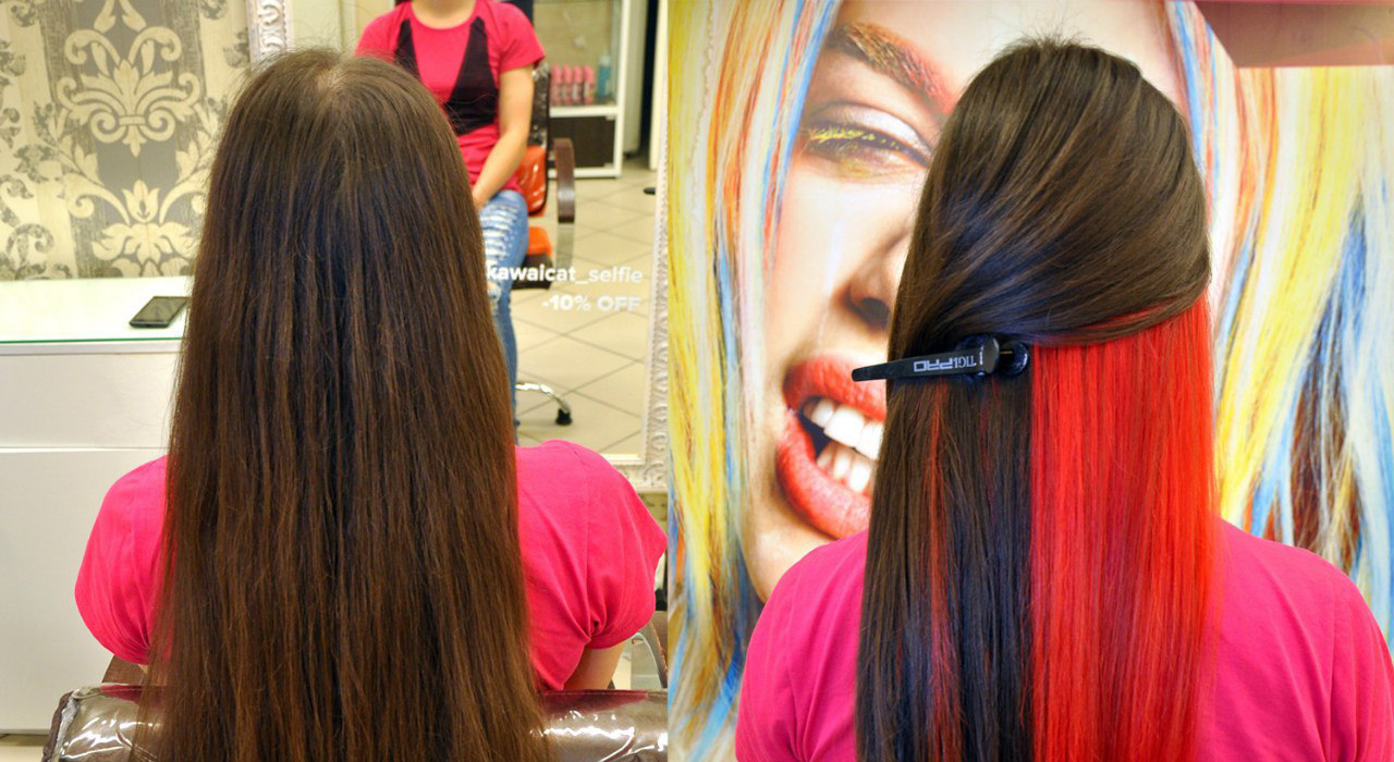 Είναι σημαντικό η διαδικασία να περιλαμβάνει την αλλαγή μόνο του κάτω ινιακού τμήματος. Επομένως, οι χρωματιστές μπούκλες εμφανίζονται στην ουρά ή στις πλεξούδες.