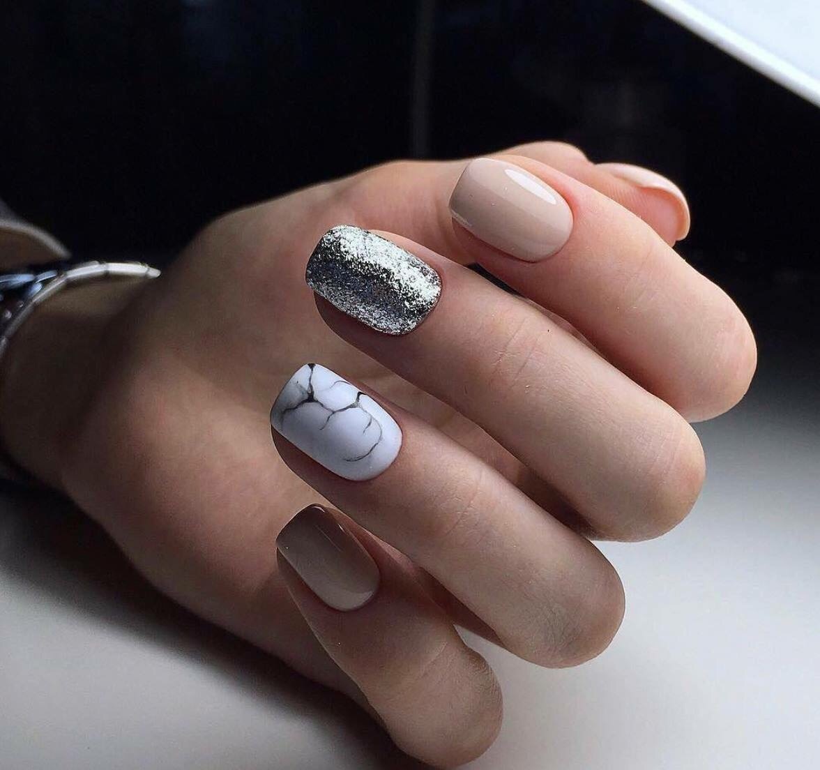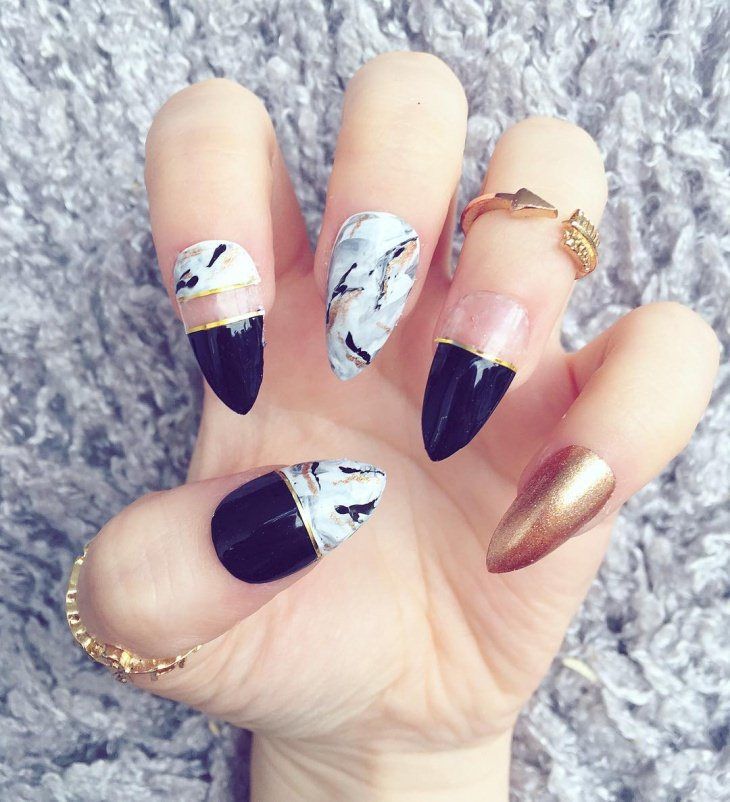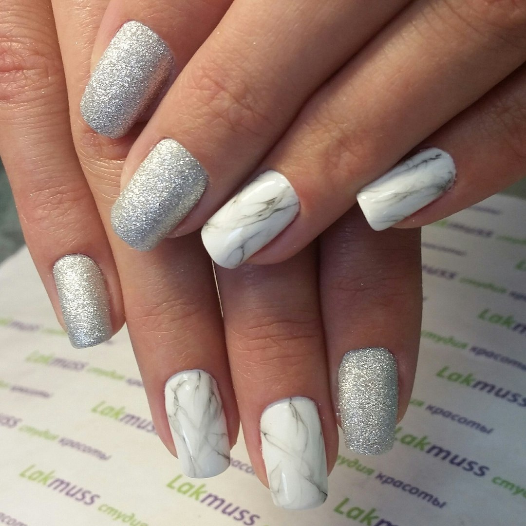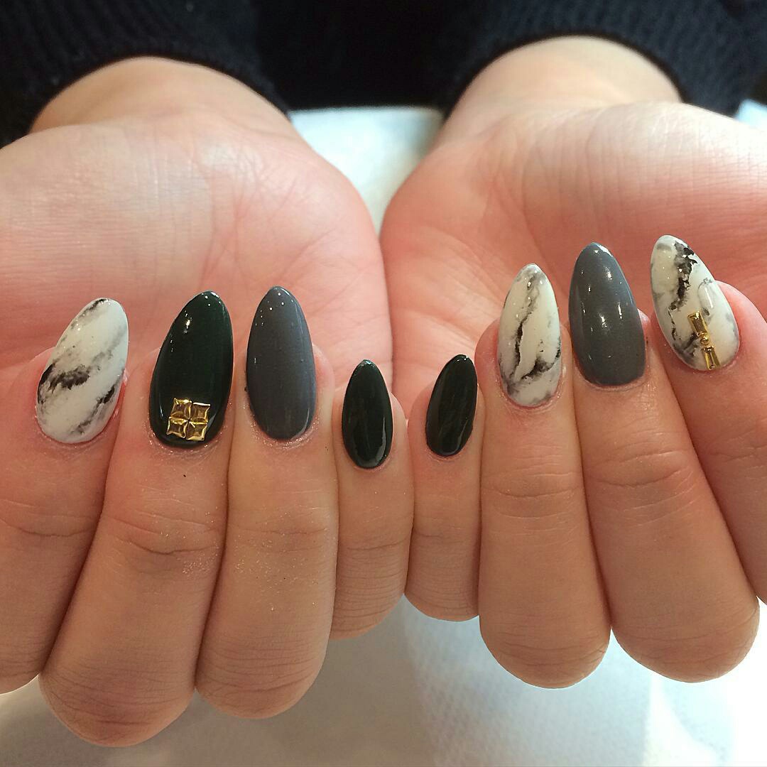 Consider a simple example on marble ornaments. Now stylists recommend moving away from long nails, according to their assurances, the optimal size of the regrown tip should be about 3-5 millimeters. At the same time, the most natural shape is preserved - oval or almond-shaped. That is, the striving for harmony with nature is still preserved. But the now fashionable emerald palette does not fit into these frames at all, especially when the girls complement it with cracks of gilding and silver. Hence the conclusion: stone nail art makes it possible for bright and extravagant natures to fully express their inner world and show a sense of style, while remaining at the peak of current trends.