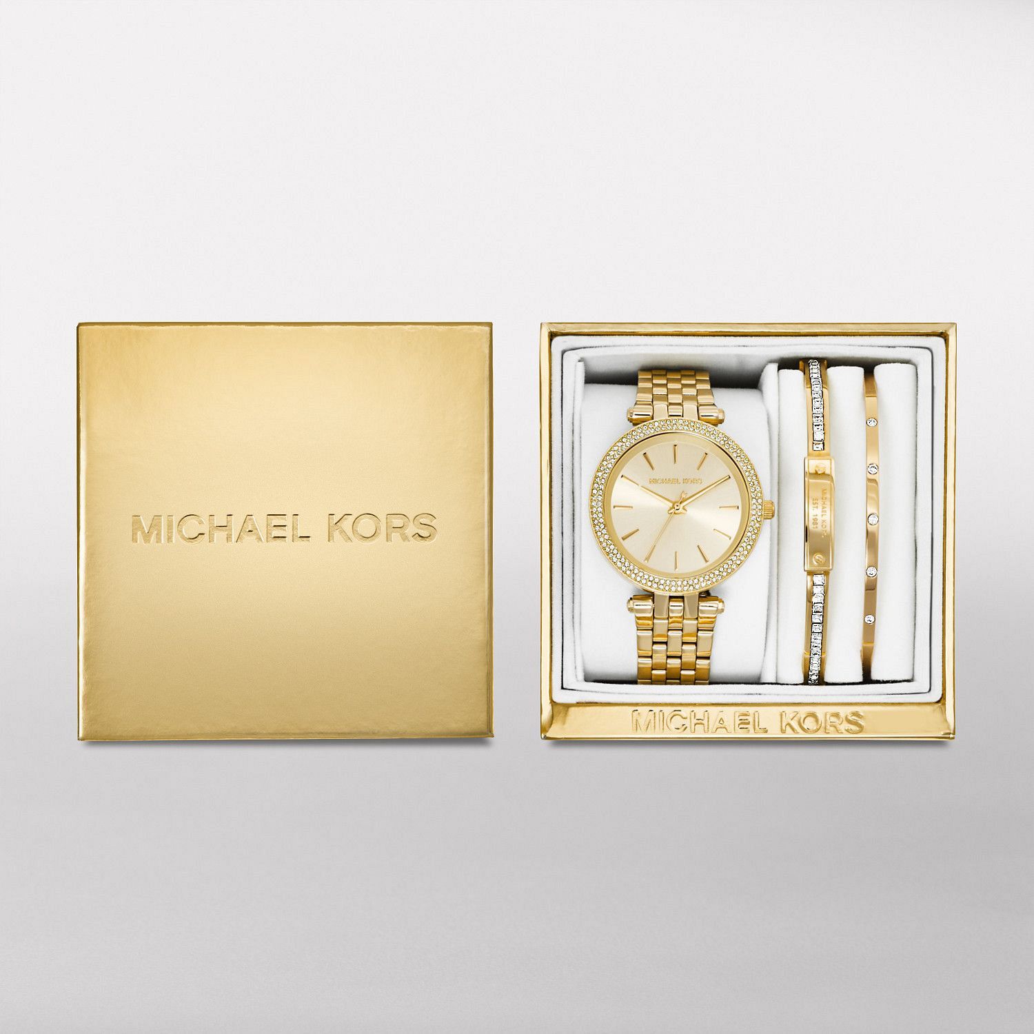 - Slim runway - you can recognize them from a thousand thanks to the large MK logo on the scoreboard decorated with scattering of stones. The golden reflections of the intertwining bracelet make the accessory truly desirable.