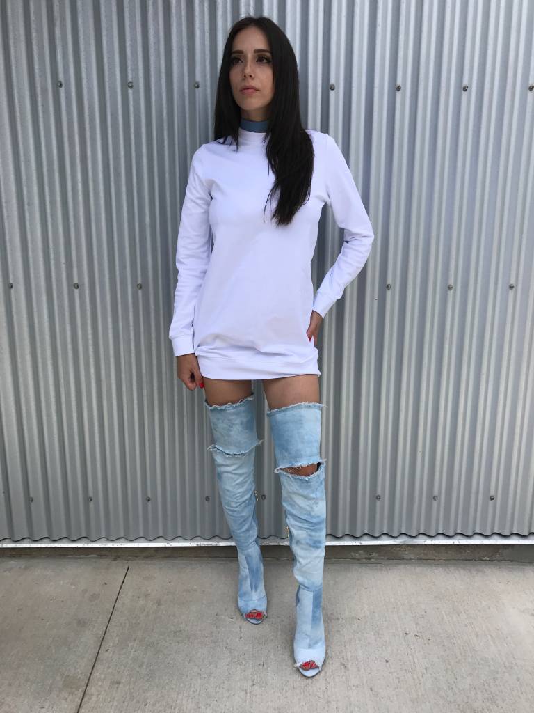 Denim muodin huipulla. Me rakastamme takkeja ja pommitakkeja, jotka on valmistettu tästä tiheästä kankaasta, "keitettyjä piirakoita", minihameita, joissa on napit, ja monia muita 90-luvun esineitä, kun se ei ollut vain suosittu, vaan kultti. Nykyään suunnittelijat suosittelevat voimakkaasti, että yritämme uutuutta - tyylikkäitä saappaita, joissa on korkea varsi, joka on valmistettu joustavasta denimistä, vetoketjulla tai leveillä pistorasioilla. Ne on yhdistetty minimekkoihin, tiukkoihin legginsseihin ja jeggingsiin, joissa on vastakkaisia sävyjä - valkoinen, viininpunainen, minttu - sekä paitoja ja ylisuuria takkeja miehen olkapäältä.