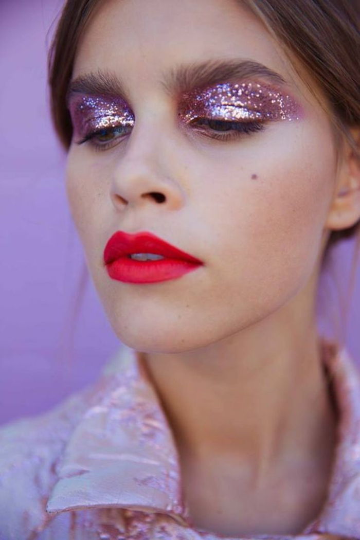 D'ailleurs! Si vous manquez de base ou de base pailletée, remplacez-la par un brillant à lèvres transparent ou un rouge à lèvres. Certes, la beauté ne durera que quelques heures. Pour la durabilité, un spray fixateur doit être utilisé.