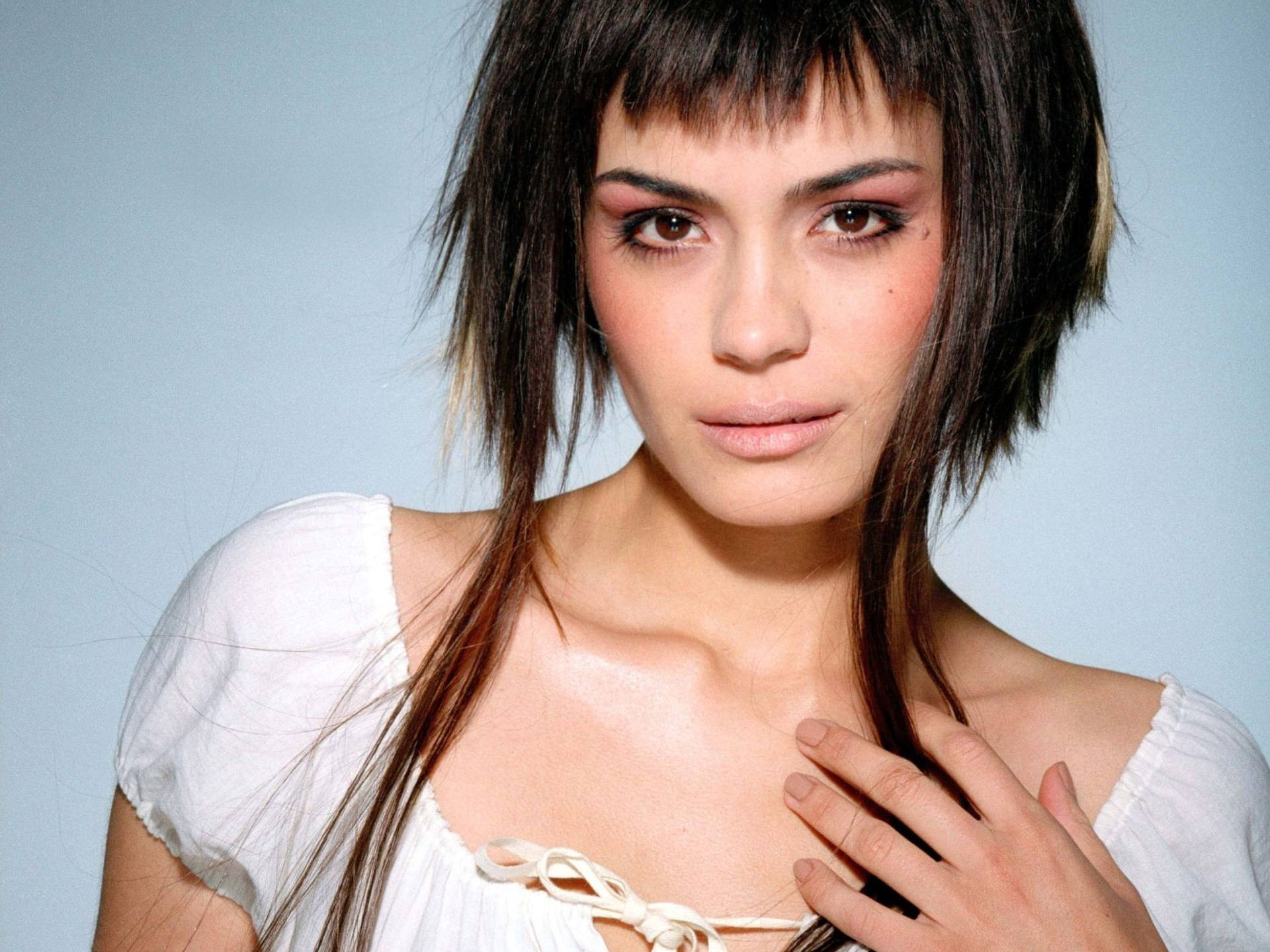 Kratki detalj ženskog izgleda sposoban je vizualno povećati čelo, ta se činjenica može uzeti u obzir.Slobodno padajući niti, uokvirujući lice, savršeno skrivaju punoću obraza i pretjerano izbočene jagodice.