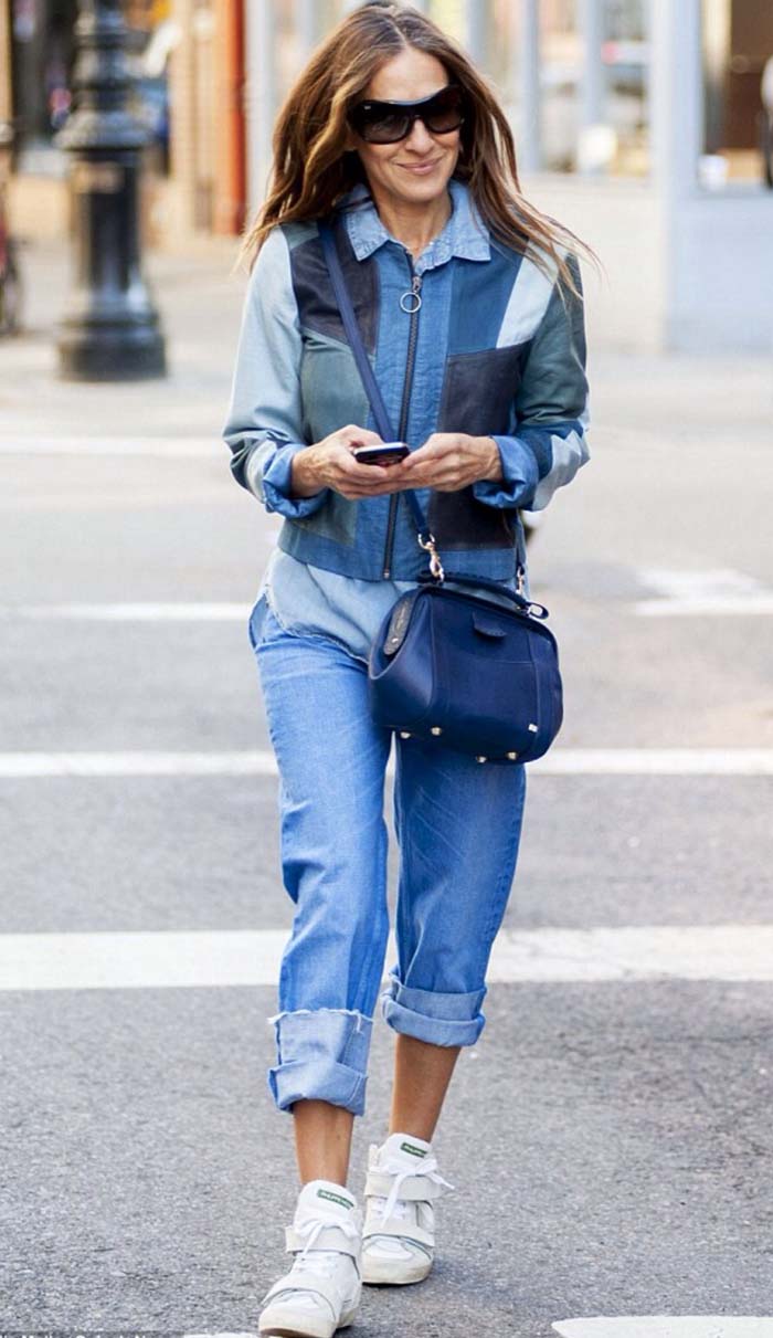 A blúz behúzható, ami hangsúlyozni fogja a jó ízlést. Ha az egész együttes farmerből készült, hígítsa más anyagokból készült ékszerekkel és cipőkkel.