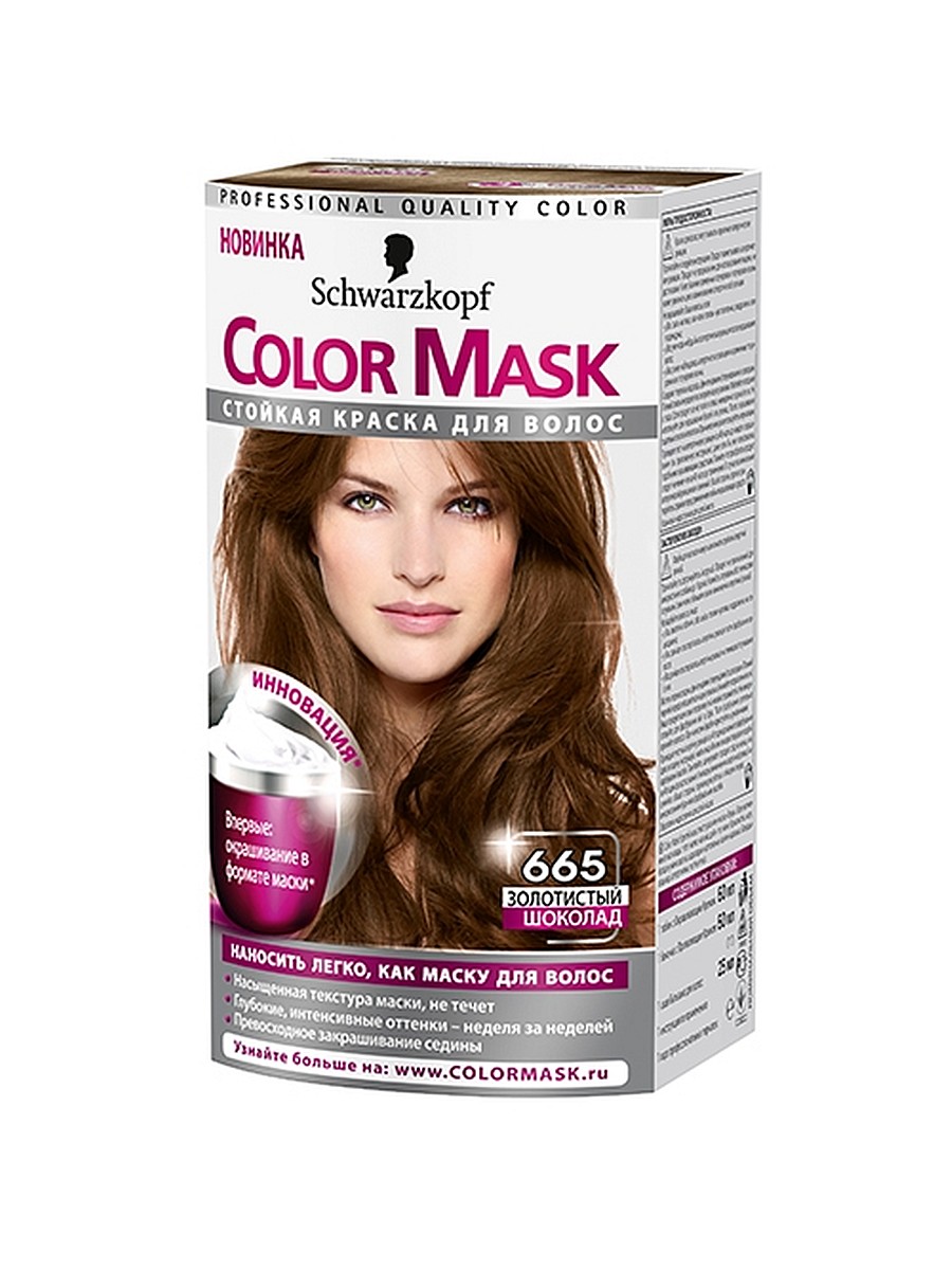 - Színes maszk "aranycsokoládé" vagy "világos gesztenye" könnyen alkalmazható és maszkként használható. Kellemes textúrája és erős hatása miatt jótékony hatással van a szürke fürtökre.