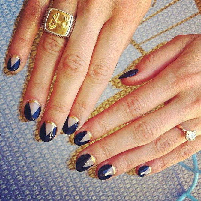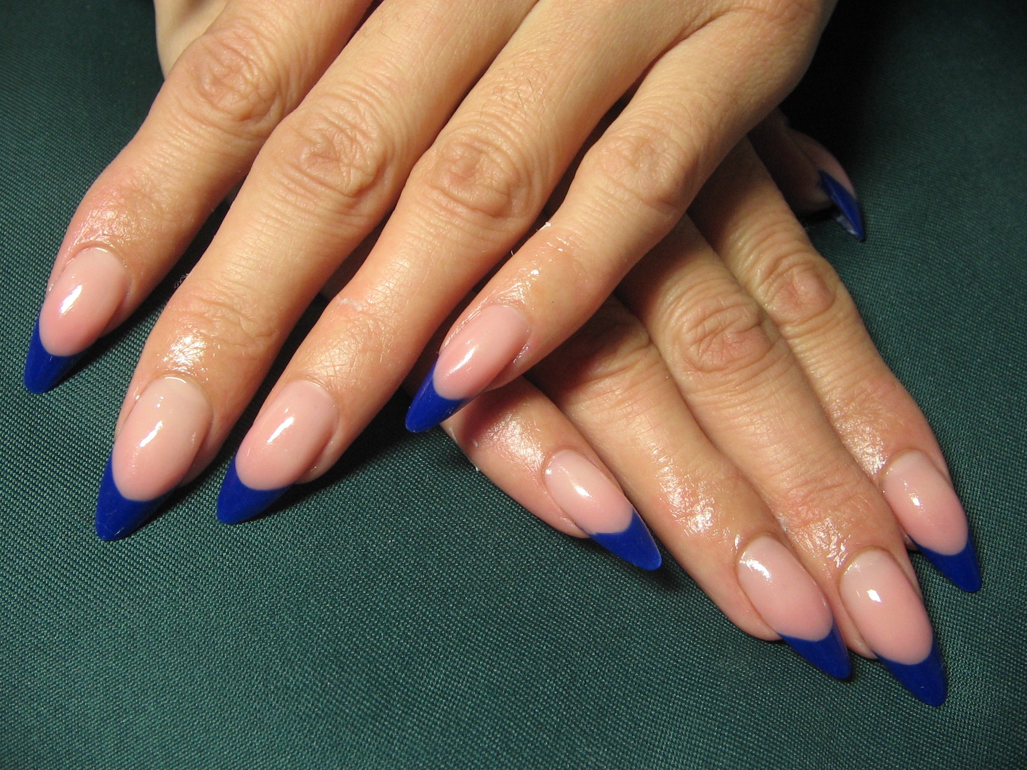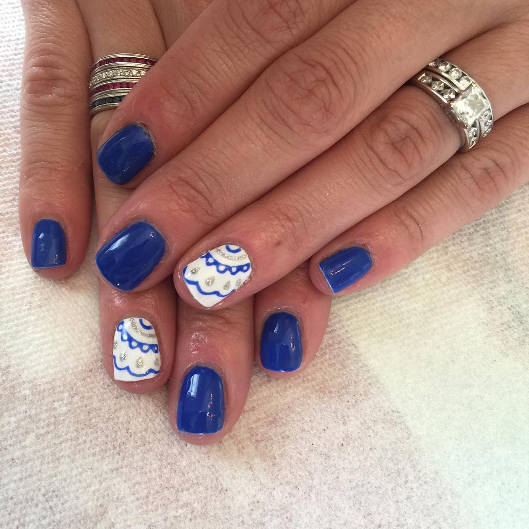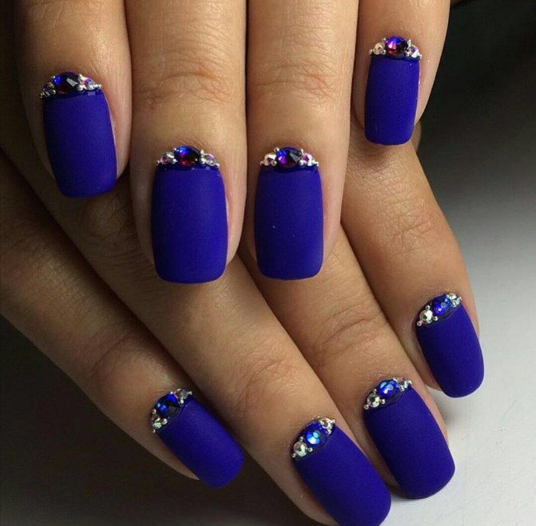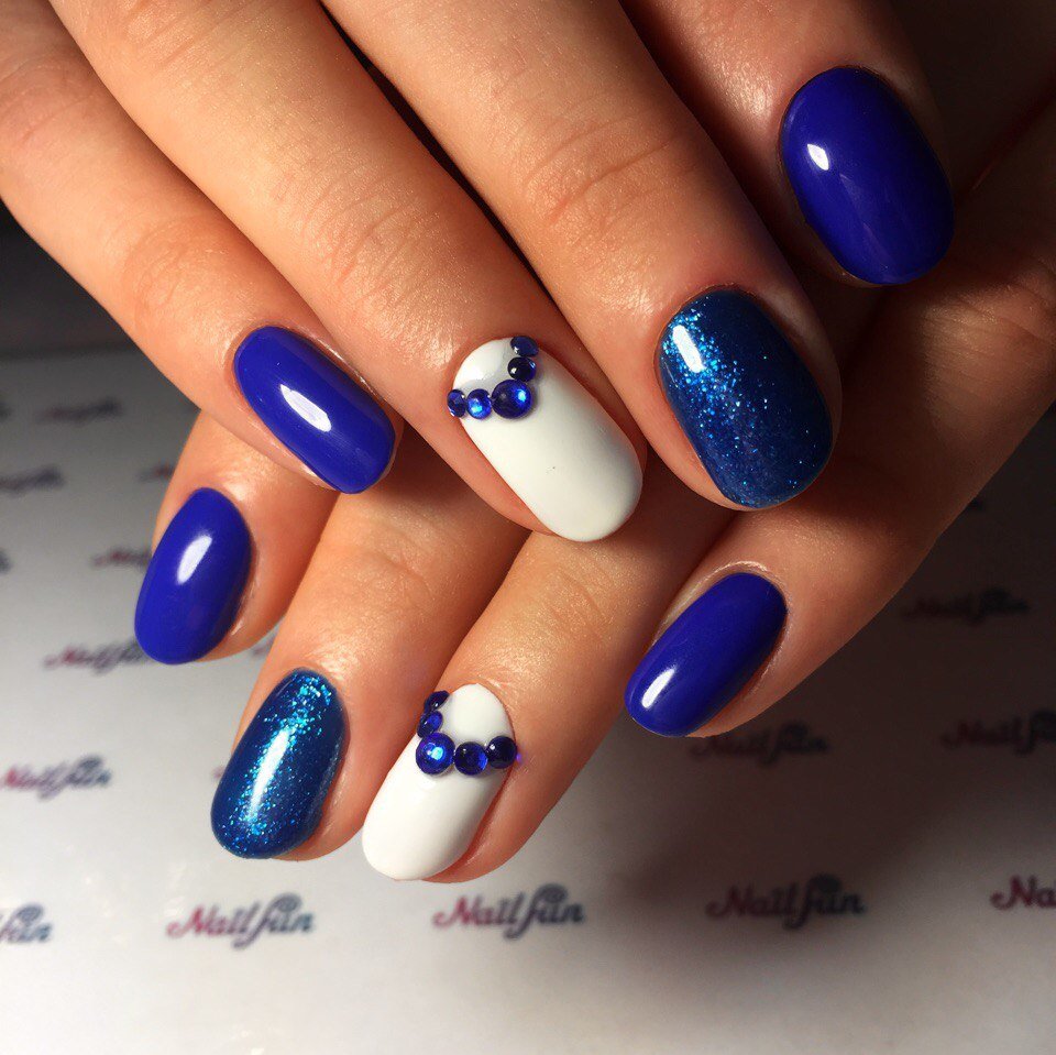- קלאסיקה אהובה. כאן אתה יכול לצייר על כל פני הלוחות עם הצבע הנדון. הקצה יכול להיות מודגש בלבן, כחול או אזמרגד. האם אתה רוצה לעקוב אחר מסורות בכל מקום? אנא! השאירו את ציפורני החתול שלמות, ועטרו רק את קצותיהם בחיוך כחול מקסים. כדי שהכל ייראה מקורי יותר, השתמש באבנים ואבני חן שונות.