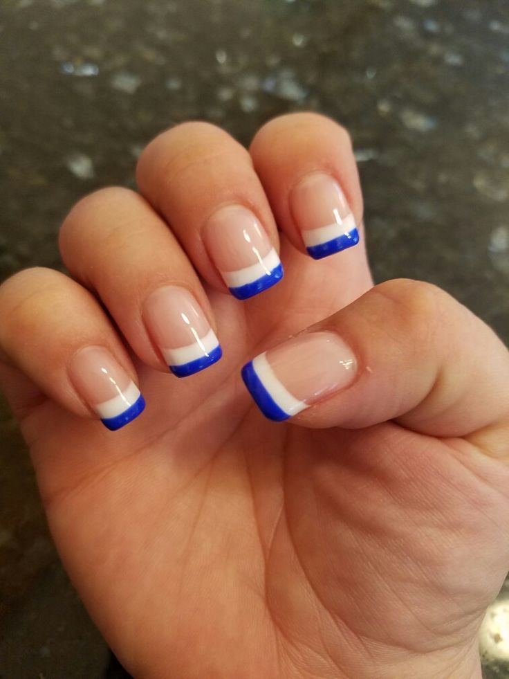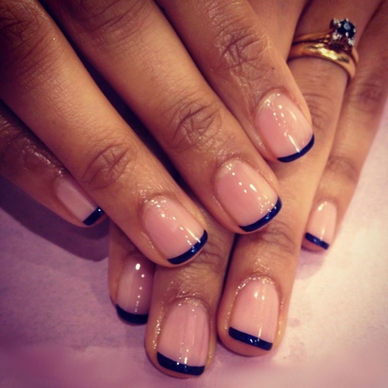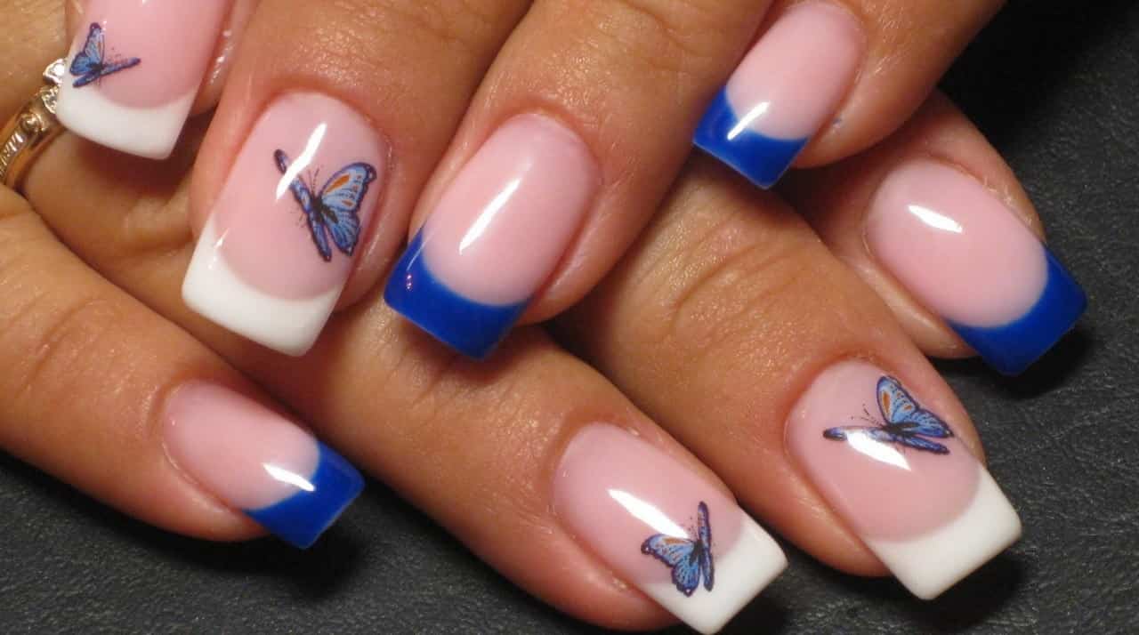 בסוף המאמר, ברצוני לדבר על הגרסה הנפוצה והמתבקשת ביותר - העיצוב הצרפתי. זה לא איבד את הפופולריות שלו במשך יותר מעשר שנים. בניגוד לסטריאוטיפים הרווחים, טכניקה זו הוצעה לראשונה על ידי אזרח אמריקאי ג'ף פינק. העובדה היא שנציגי עסקי השואו חסרה מאוד טכניקה אוניברסלית שתשלב בקלות עם כל תלבושות וקשתות. ועכשיו נדבר על מניקור צרפתי כחול מסוגנן, או יותר נכון, על הווריאציות הפופולריות ביותר שלו בשנה הבאה: