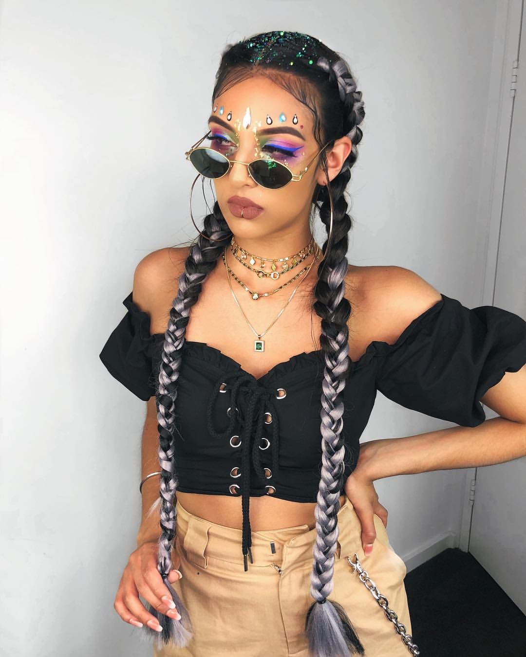 Il y a quelques années, des tresses de boxe, et même avec des canelones brillants, auraient provoqué beaucoup de regards surpris et même une particule de désapprobation de la part des passants. Mais cet été, de telles personnalités audacieuses sont de plus en plus courantes dans la rue, et elles ne sont pas très pointilleuses sur les styles vestimentaires. Habillez-vous de différentes manières : jeans avec des baskets, des robes d'été et des robes d'été - tout s'intègre dans un look moderne.