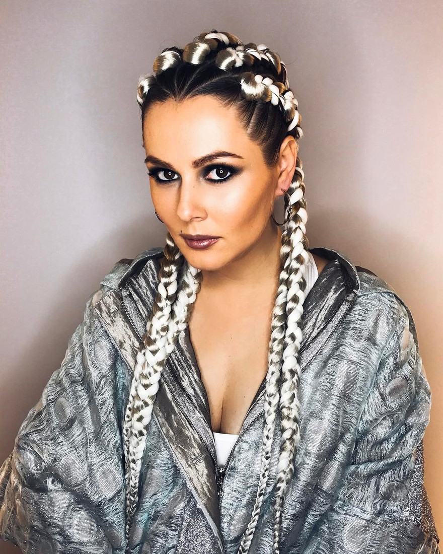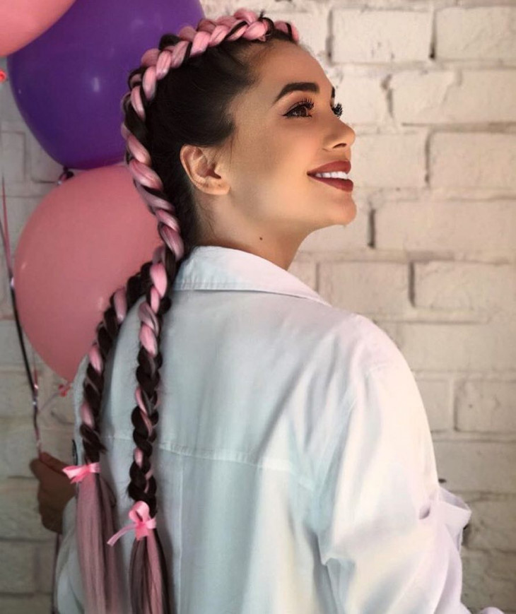 Intéressant!Les célébrités russes et ukrainiennes ont décidé de suivre les tendances actuelles. Ainsi, lors de l'un des concerts avec des nattes roses, l'ancienne soliste du groupe "Silver" Elena Temnikova s'est illuminée. Nastya Kamenskikh a décoré les tresses avec des accords de lilas. Et Yulia Sanina, la chanteuse principale de The Hardkiss, a préféré une couleur émeraude profonde.