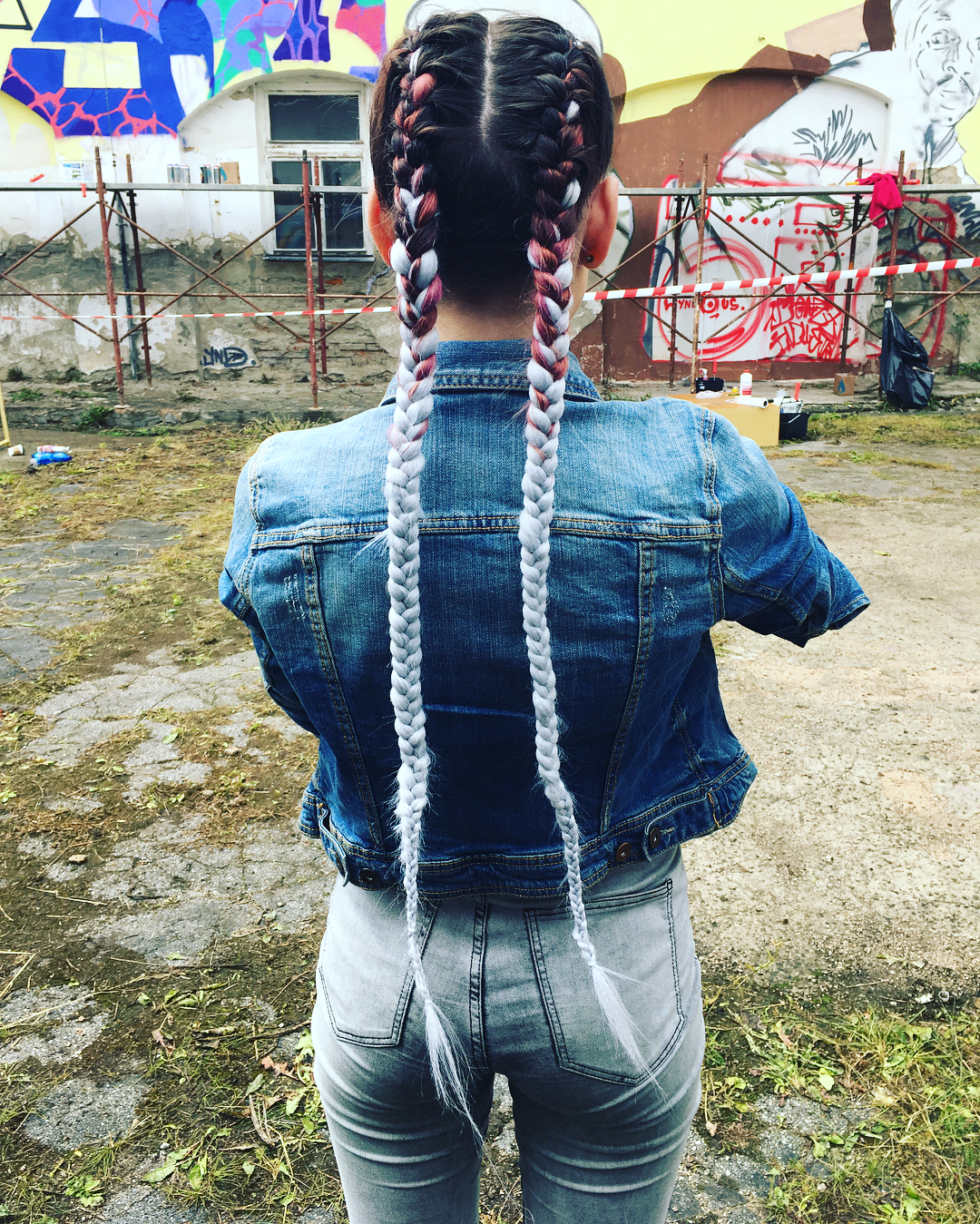 En plus des personnalités publiques, les mannequins des défilés de mode ont servi d'exemple. Ils ont commencé à ajouter activement des taches multicolores l'année dernière au défilé Valentino, Dior et pour le tournage dans le magazine Vogue. Nous avons utilisé différents matériaux : du fil, du fil dentaire et des rubans de satin. Cependant, les stylistes par essais et erreurs ont réalisé qu'il n'y avait rien de plus pratique que le kanekalon.