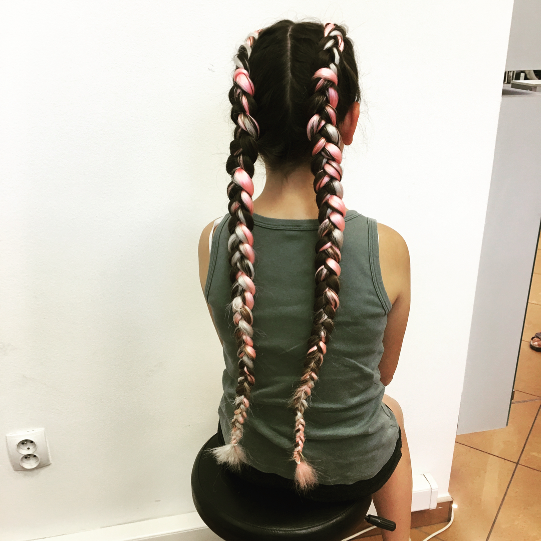 Conseil! Le coût de création d'une création lumineuse dans le salon dépend directement de la longueur d'origine des boucles et du nombre de tresses. Deux longues tresses avec inserts coûtent 1 000 roubles ou plus. Si vous achetez du matériel dans un magasin et créez de la beauté à la maison, vous investirez 400 à 600 roubles. C'est pourquoi il est pertinent d'apprendre cette action.