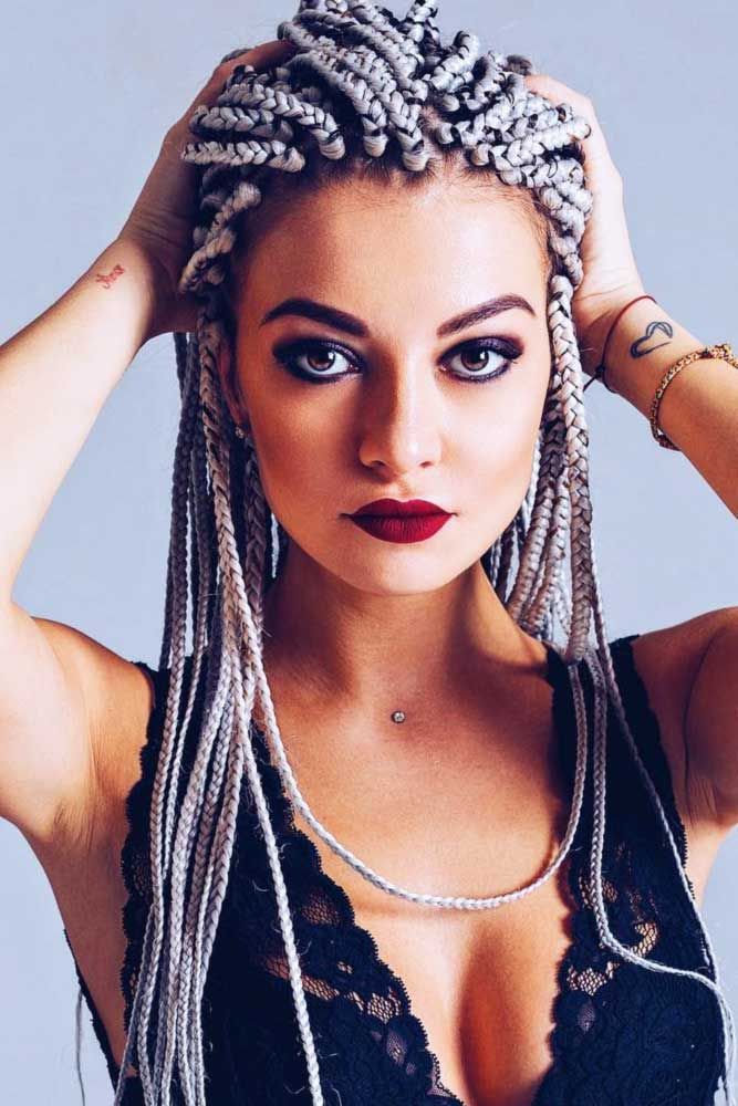 Les tresses boxer impressionnent par la forme ovale et triangulaire du visage, les filles aux pommettes hautes, aux grands yeux et aux lèvres charnues. Les petites caractéristiques et les formes brutes ne sont pas les meilleures données initiales pour créer une beauté ultra-moderne.