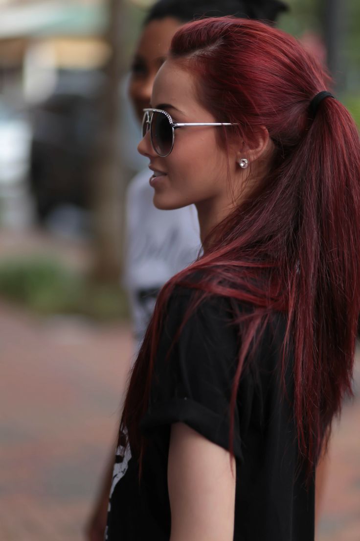 Sur la base de cette couleur, il se révélera créer une image lumineuse et inhabituelle. Pour obtenir une lueur rouge ardente, les fashionistas aux cheveux noirs n'ont pas besoin d'éclaircir, le pigment s'adapte parfaitement aux cheveux fins et épais, impressionne avec tout type de coupe de cheveux.