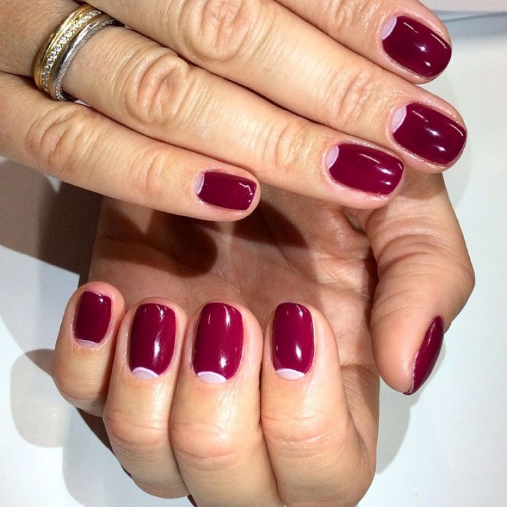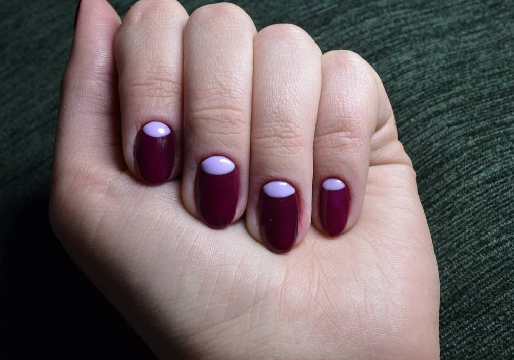 Concentrez-vous sur une règle simple - combiner une lune claire avec un fond sombre de l'ongle. Une teinte blanche ou beige s'accorde bien avec un vernis bordeaux contrasté. Mais de nos jours, un grand nombre d'autres combinaisons sont disponibles que vous pouvez essayer vous-même :