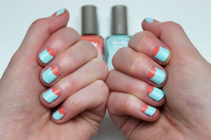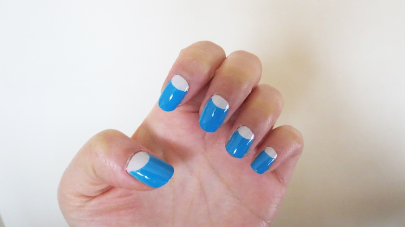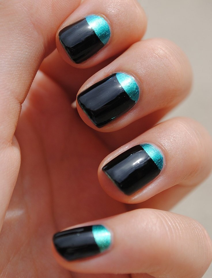 En fait, il s'agit d'une variante du français, ou du français vice versa, si vous préférez. Le principe de base de la coloration : une couleur contrastante est appliquée sur la lunule (la partie inférieure de la plaque à ongles) vers le doigt ou le bord libre du souci.