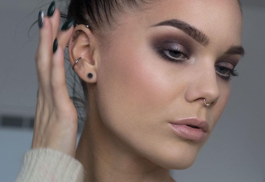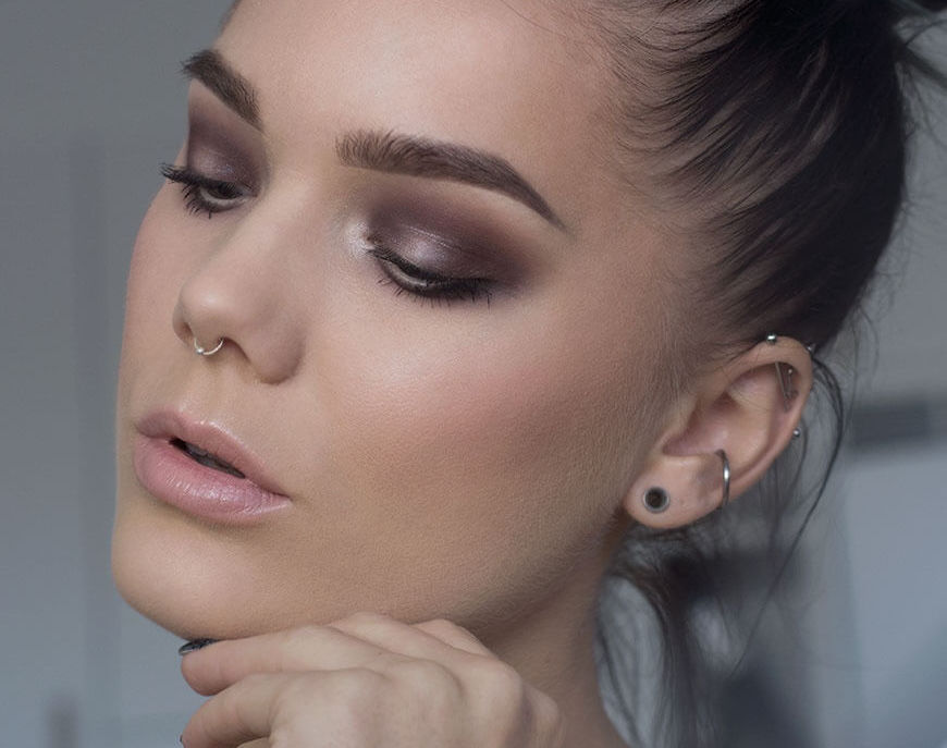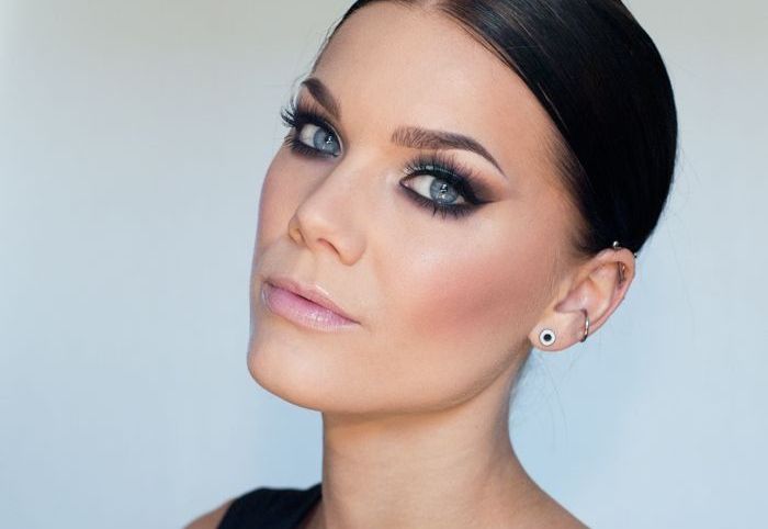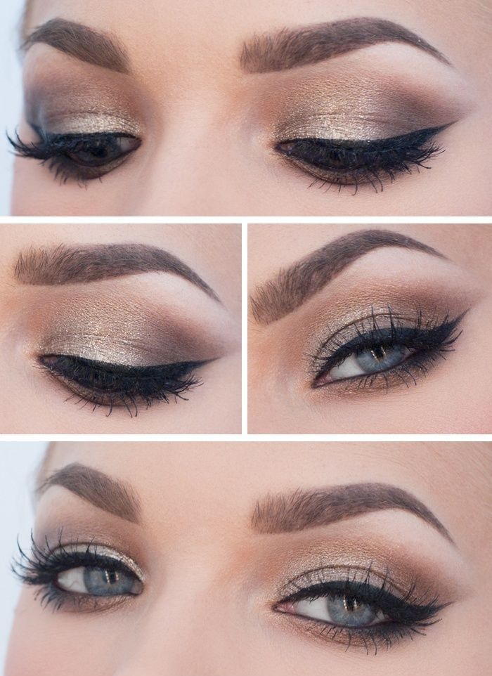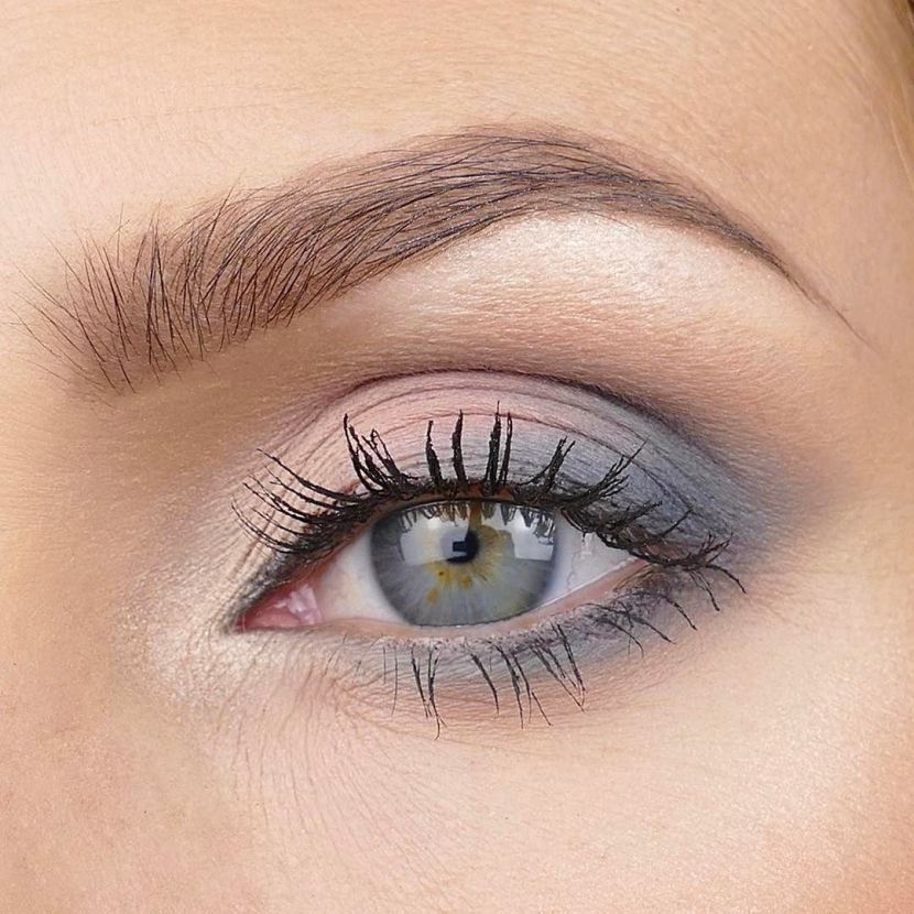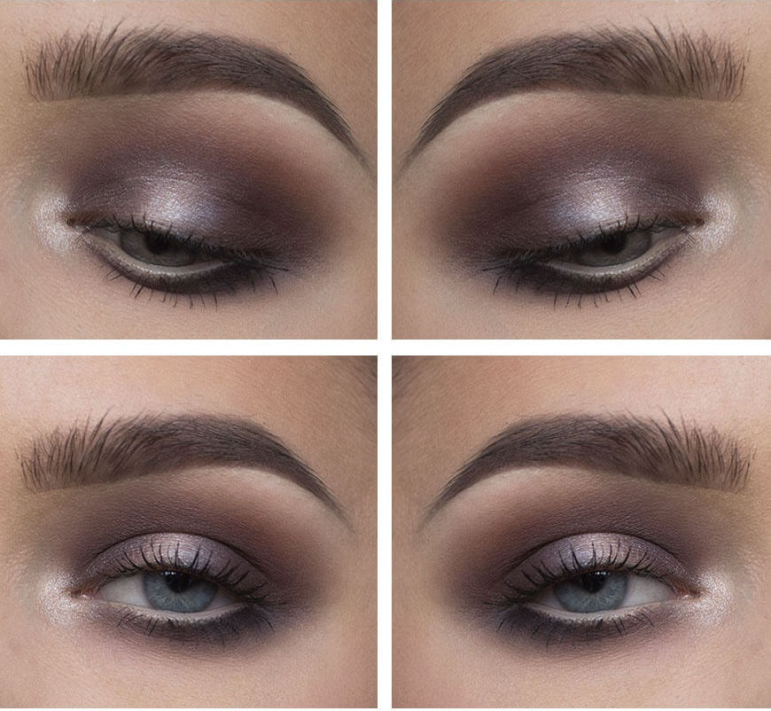 Conseil!Soyez prudent lorsque vous appliquez des nuances brunes. On pense qu'ils ne conviennent pas aux yeux gris, ils donnent un aspect fatigué et terne. Cependant, une échelle savamment sélectionnée et des transitions soigneusement conçues peuvent vous éviter cela. Avec un type de couleur froide, arrêtez-vous sur des représentants d'une gamme froide et avec une peau foncée sur des ombres avec une teinte dorée.