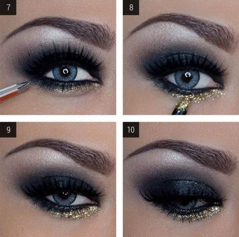 - une doublure bleue le long de la ligne entre les cils en combinaison avec du mascara bleuté peut ajouter de l'expressivité au look, mais cette option n'est applicable qu'aux looks de soirée et de fête.
