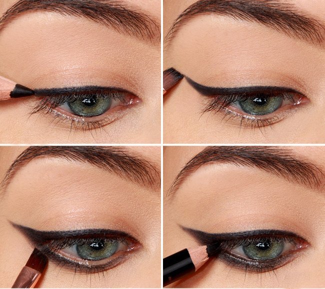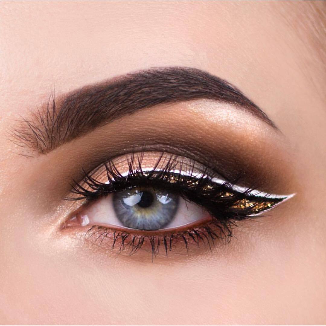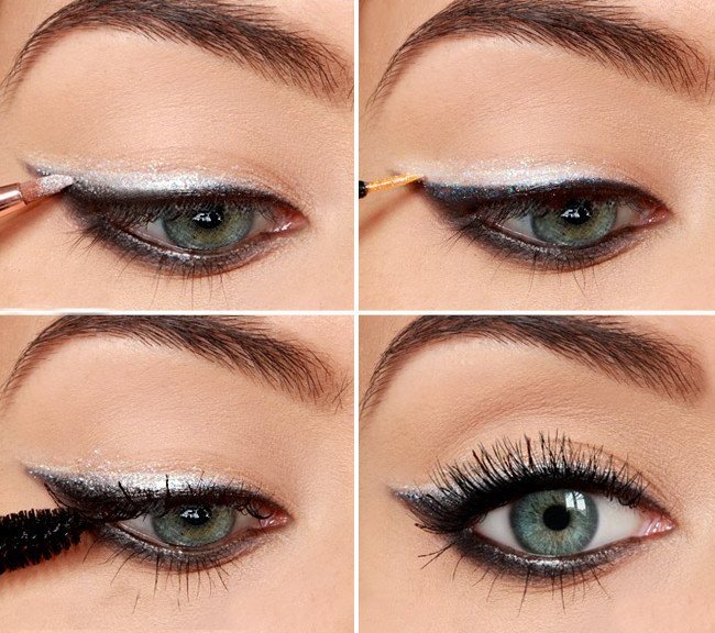 - Si vous souhaitez ajouter du contraste avec un eye-liner noir, tracez une flèche nette et, une fois sèche, tracez une fine ligne argentée dessus avec un crayon doux. Ainsi, la flèche diminuera visuellement, deviendra plus gracieuse et attrayante;