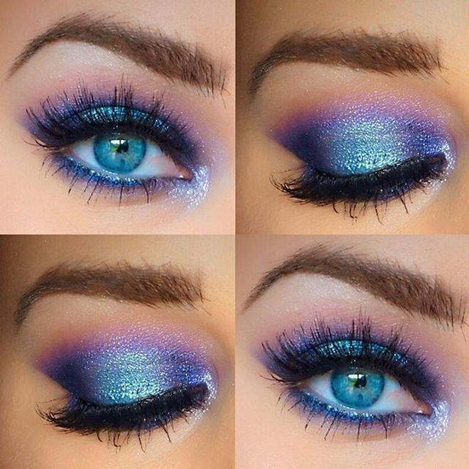 - si vous voulez vous en tenir aux tons bleus, assurez-vous d'abord que les chiffres que vous choisissez ne correspondent pas à la teinte native des yeux. Il est préférable de s'attarder sur un contraste lumineux, en utilisant des peintures outremer ou cobalt avec des yeux bleu clair. Évitez les couleurs ternes et sombres qui fatiguent votre look;