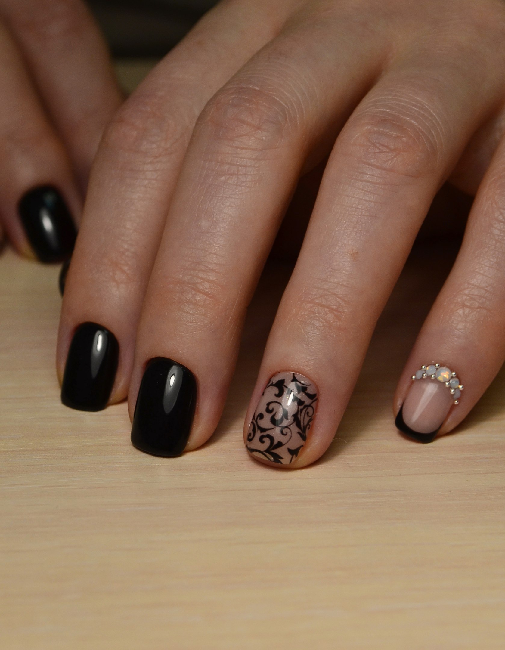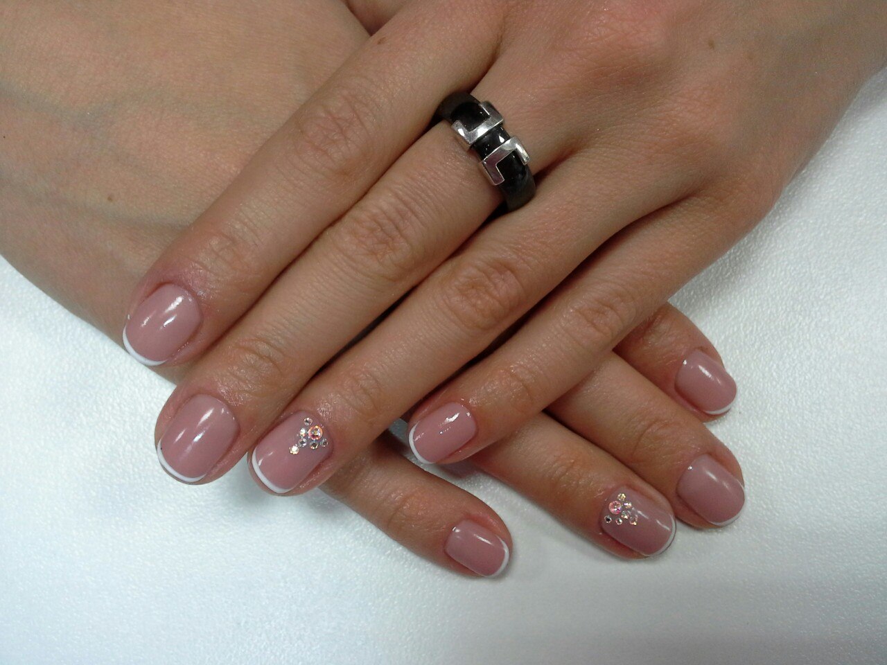 - Dans la version mariage, il convient d'utiliser des strass et des pierres. Dans notre cas, il est important de ne pas en faire trop, car cela peut s'avérer maladroit. Concentrez-vous sur plusieurs assiettes. Par exemple, sur sans nom et en moyenne. Ou éparpillez des cristaux sur chacun, uniquement dans un ordre précis : près de la pointe ou à la base.