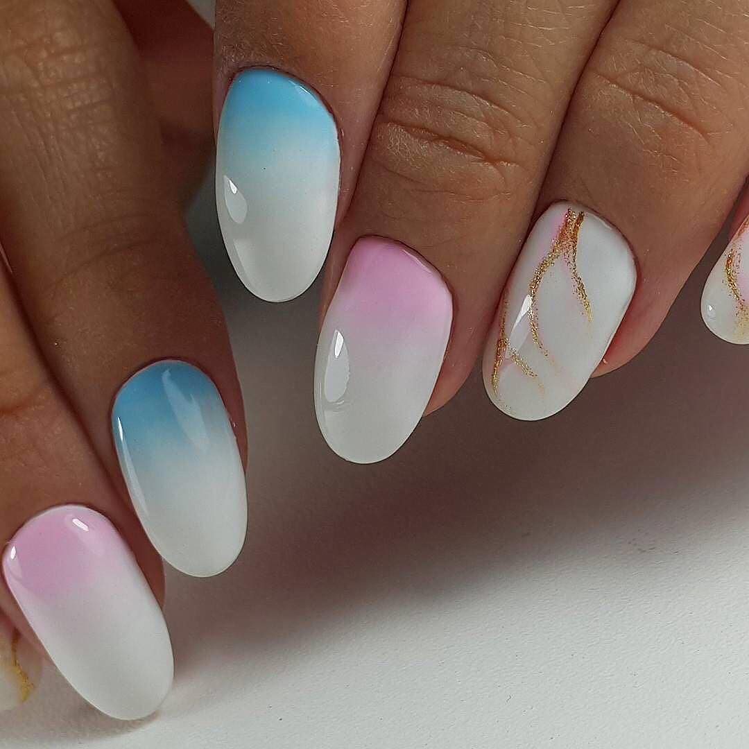 Cette technique est gagnant-gagnant pour tout événement et à tout moment de l'année. Dans l'industrie des ongles, il existe des variations d'ombre avec des couleurs néon et des palmiers, des débordements de bleu pâle avec des compositions marines, ainsi qu'une abstraction ornée sur des transitions abstraites.