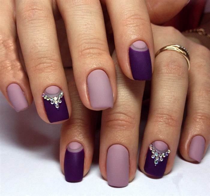 Conseil!N'oubliez pas que le design mat est beaucoup plus fantaisiste que le brillant traditionnel, tous les défauts deviennent perceptibles avec lui. Il nécessite une manucure soignée et des plaques à ongles parfaitement plates.