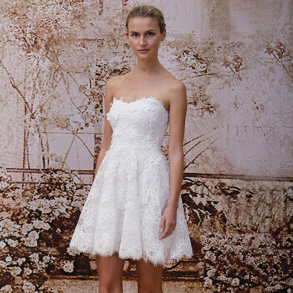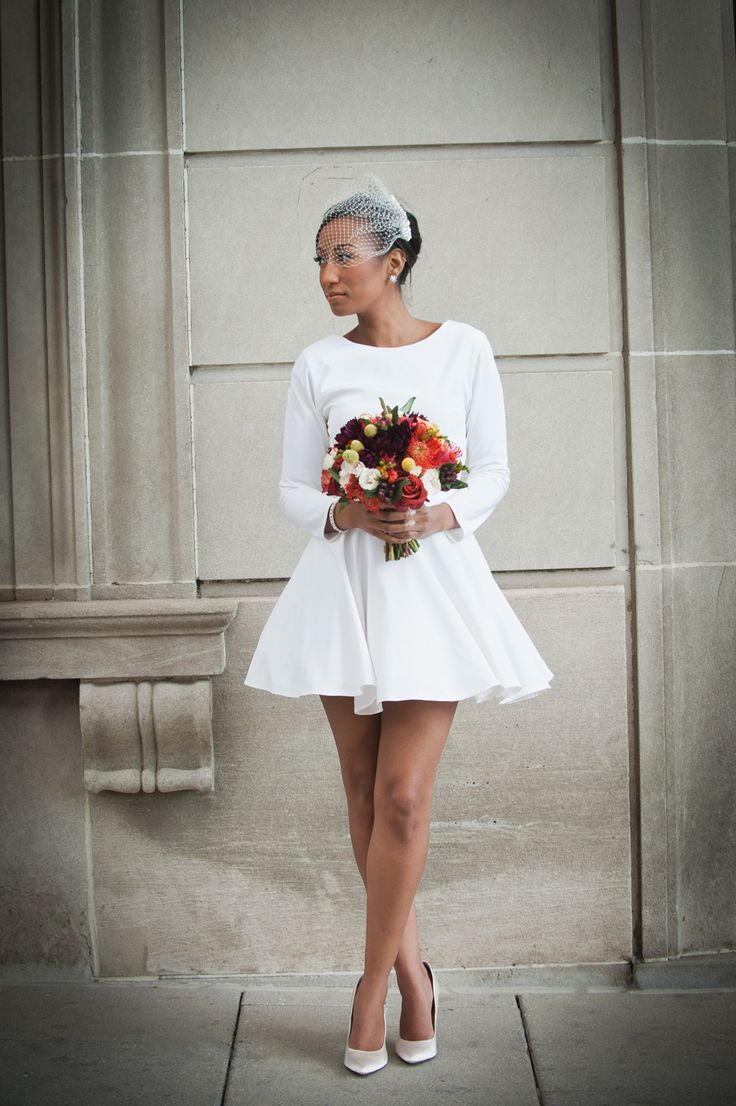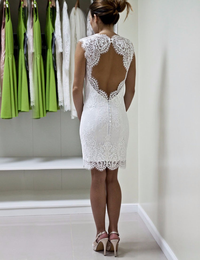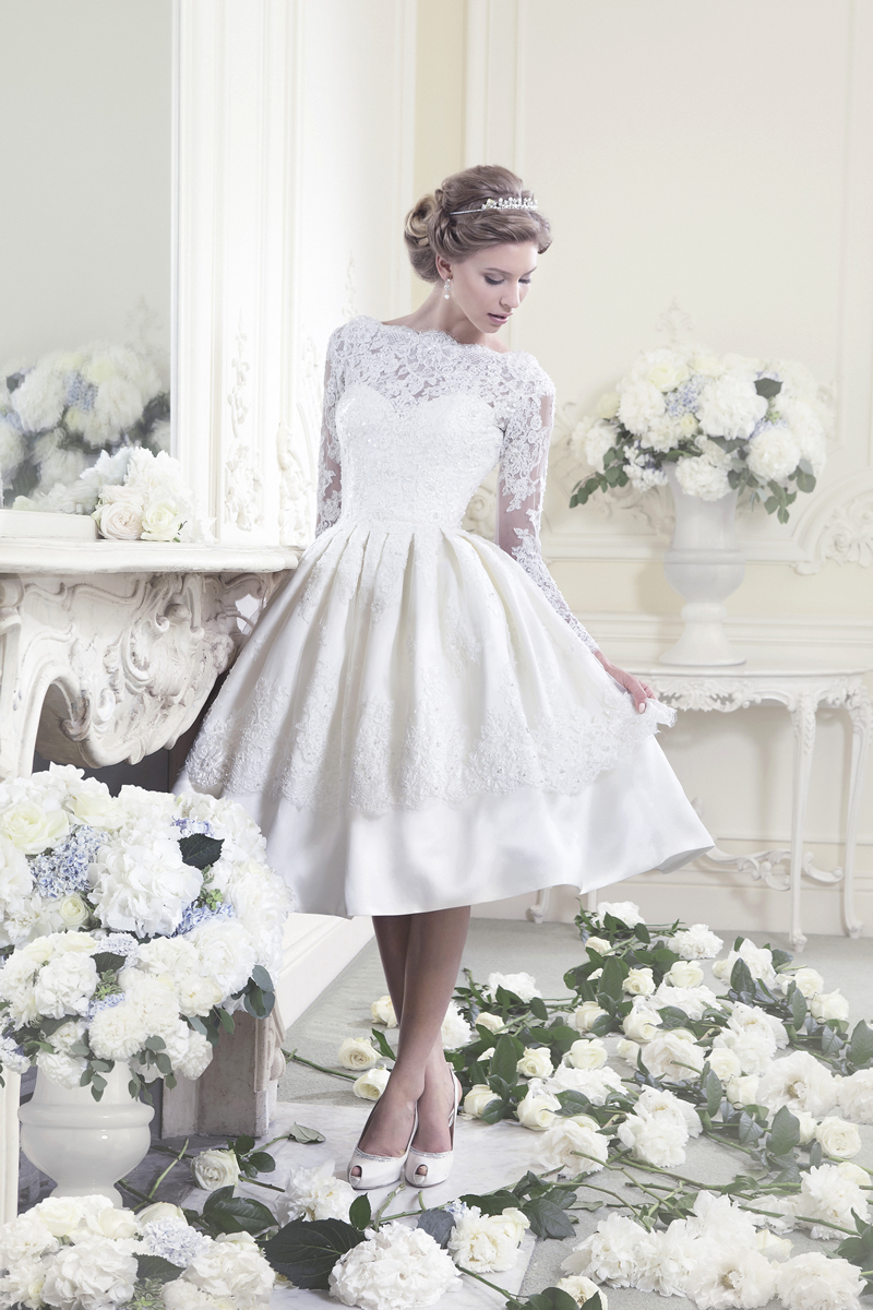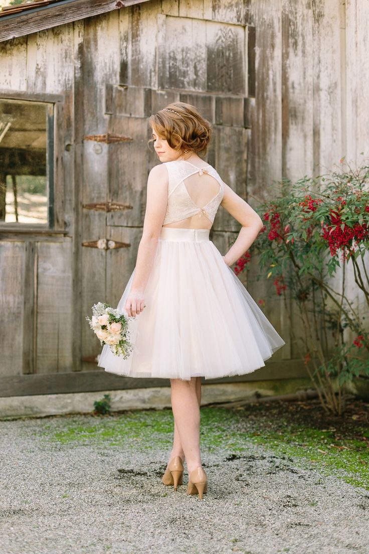 Unge og aktive bruder foretrekker i dag korte formelle kjoler. De åpner bena, og det er ikke nødvendig å bære kilometer med stoff fra et mykt, langt skjørt. Takket være dette er det ikke noe ubehag, og det vil være mulig å delta i alle de foreslåtte konkurransene. Og bildene ser mer originale ut enn med de klassiske litt utdaterte modellene.