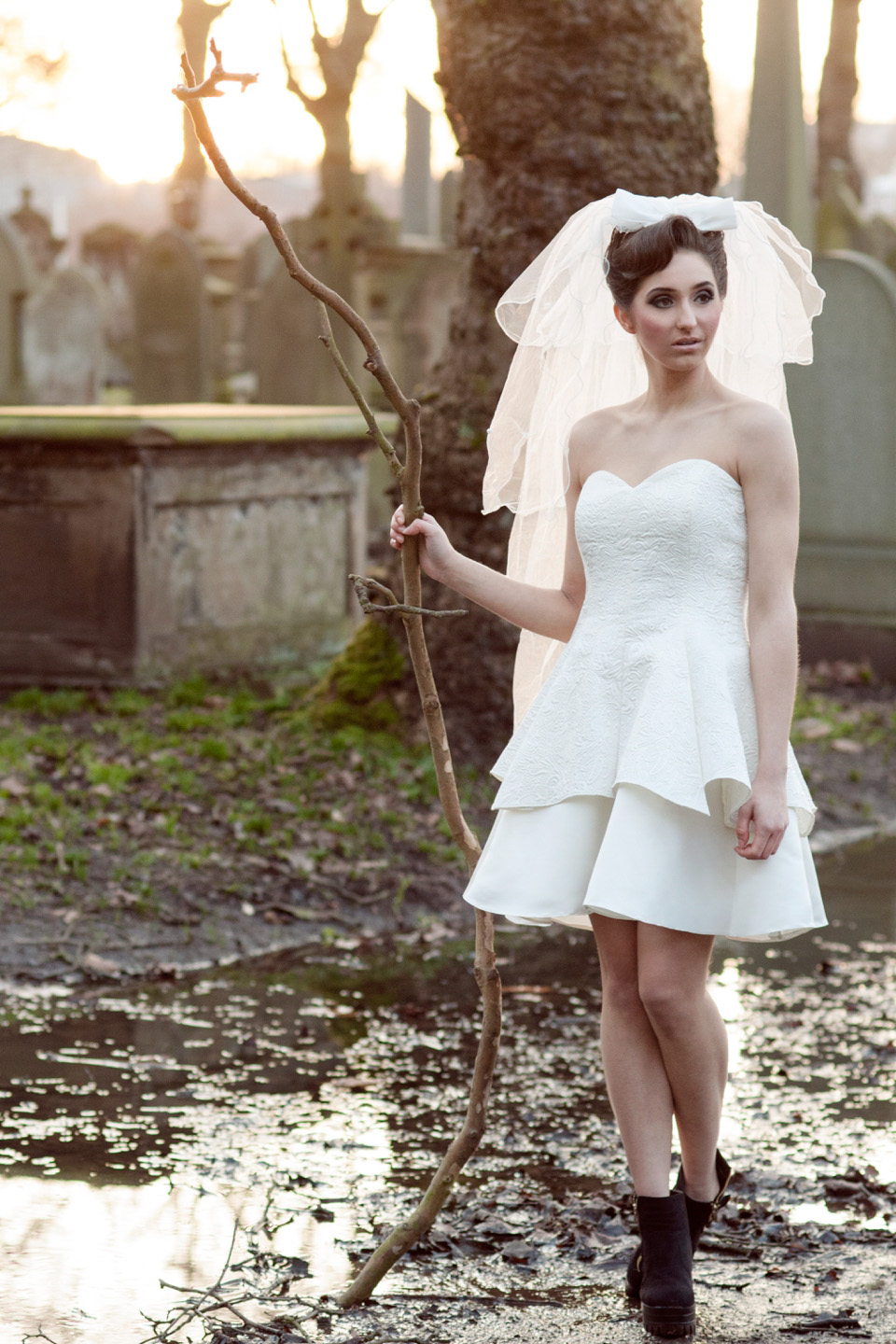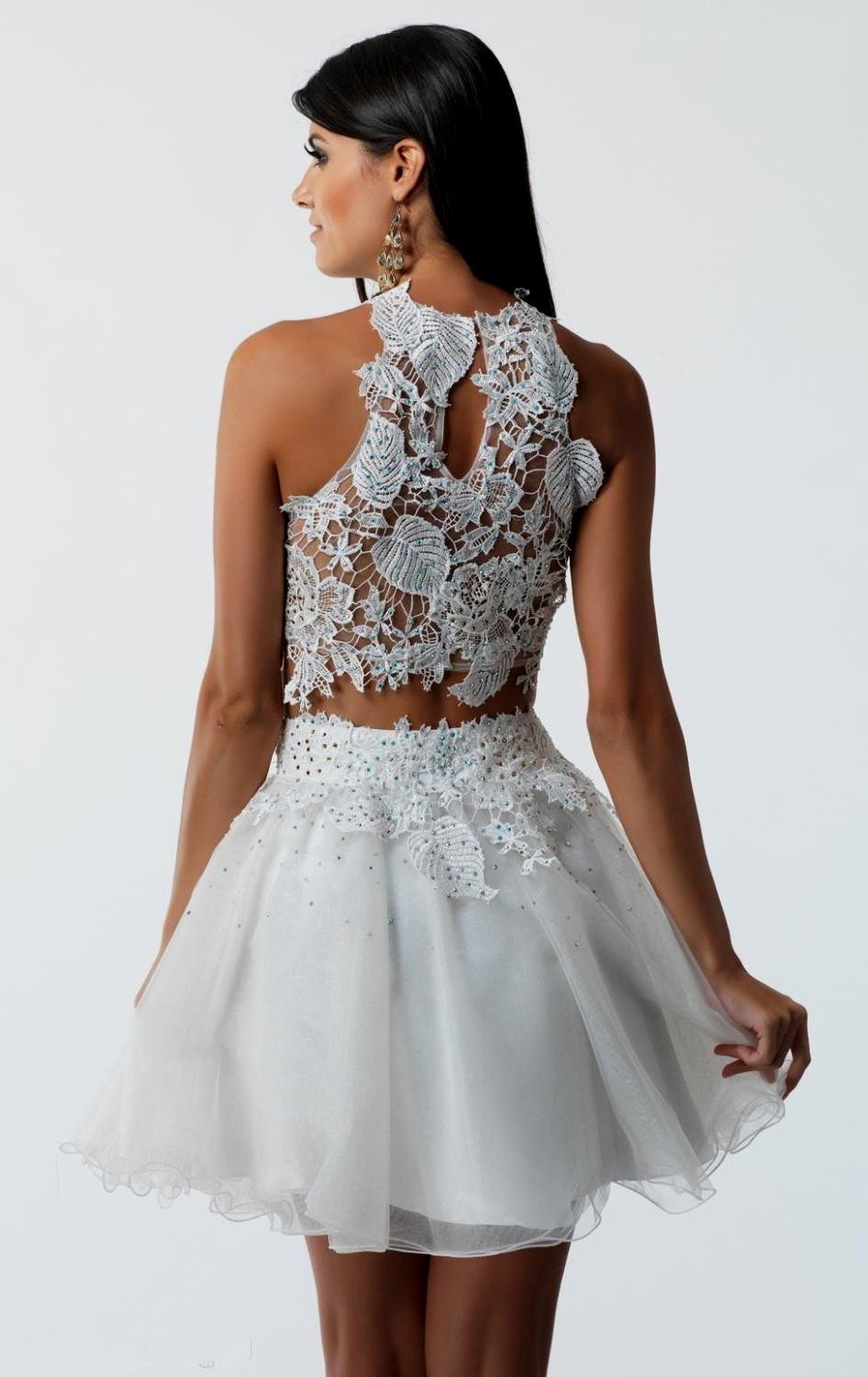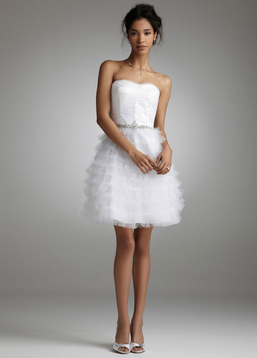 Unge og aktive bruder foretrekker i dag korte formelle kjoler. De åpner bena, og det er ikke nødvendig å bære kilometer med stoff fra et mykt, langt skjørt. Takket være dette er det ikke noe ubehag, og det vil være mulig å delta i alle de foreslåtte konkurransene. Og bildene ser mer originale ut enn med de klassiske litt utdaterte modellene.
