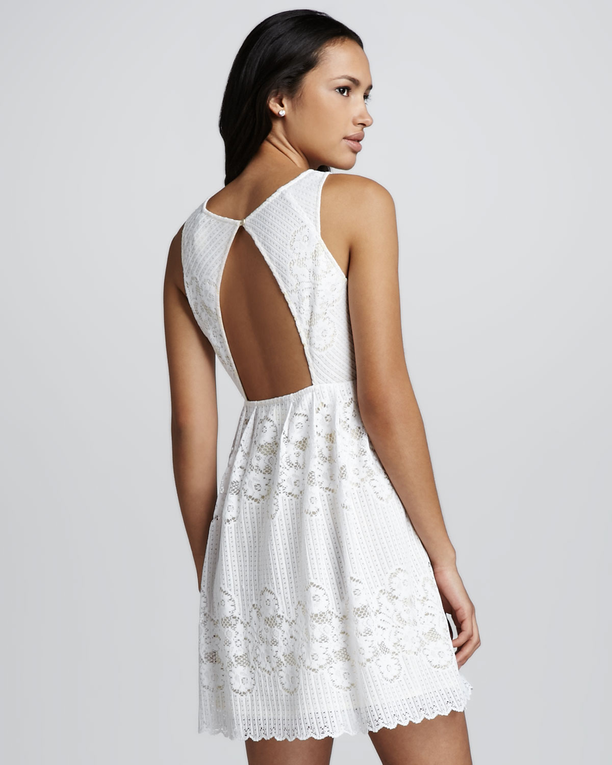 Råd! For svingete jenter er en åpen rygg ideell når du velger de riktige klærne. Lette blonderermer, volanger i midjen og A-utringning vil feilfritt skjule mangler i fylde.