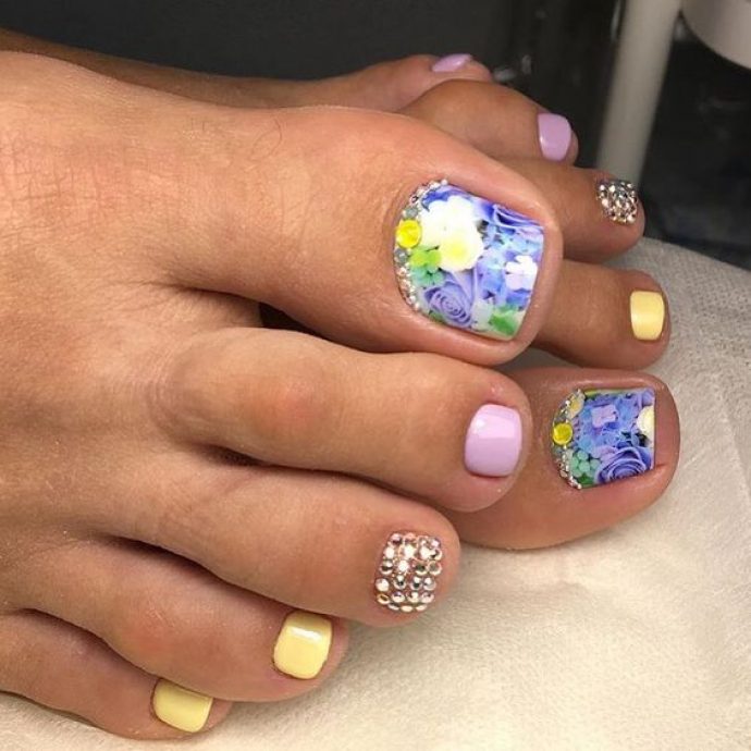 Une pédicure en strass multicolores est une idée gagnant-gagnant dans la création de techniques estivales.