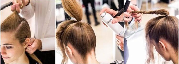 - Z masy, która pozostała nienaruszona w ogonie, oddziel kilka pasm i ukryj pod nimi powstałą czesaną część. Zapewni to wyrafinowaną gładkość. Pamiętaj, aby ukryć końce.