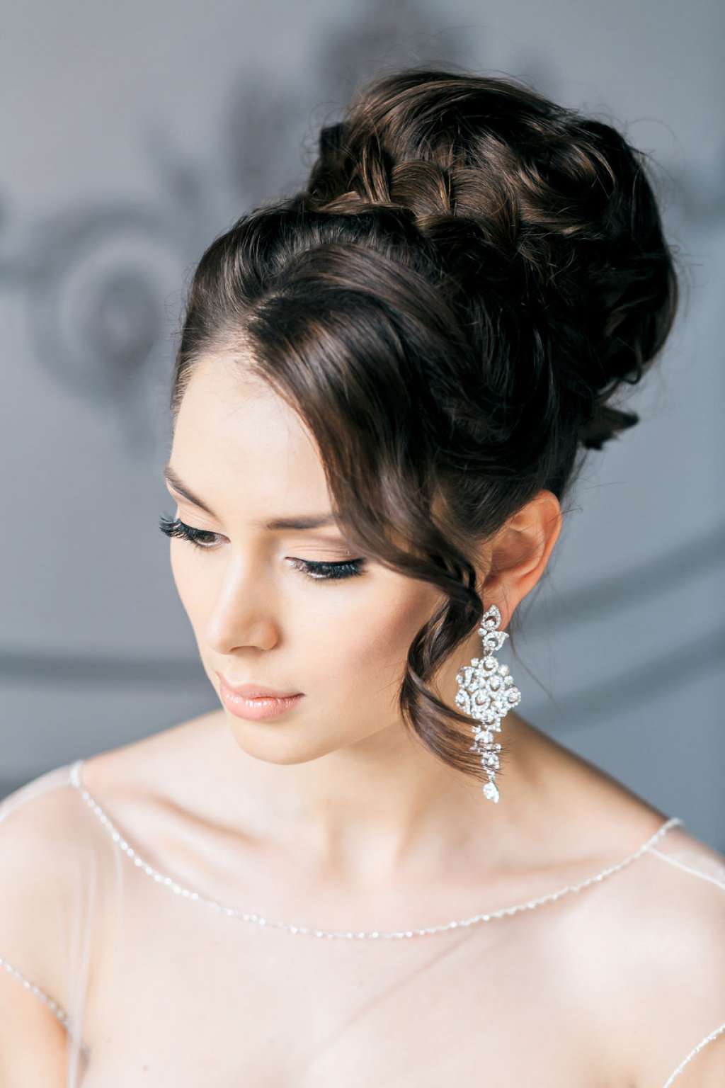 - Całkowicie przetwórz włosy grzebieniem i podnieś je, zabezpieczając je niepozornymi spinkami do włosów. Dobrze posyp lakierem, aby nie rozpadał się przed czasem.Jeśli nie możesz pochwalić się gęstością, ukryj pod polarem specjalny wałek lub bajgiel. Zapewni to dodatkową efektywną objętość. W takim przypadku użyj minimum biżuterii lub całkowicie je odrzuć.
