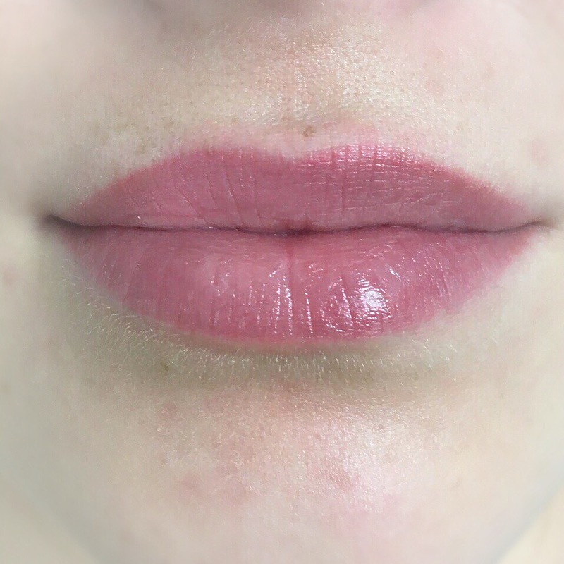 O desfoque suave do contorno funde-se gradualmente com a tonalidade natural dos lábios. Esta opção permite escolher variações de cores mais brilhantes para o contorno, mantendo a naturalidade da maquiagem. Externamente, o efeito lembra um batom ligeiramente gasto.