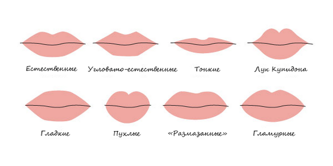 Como hoje estamos considerando uma maquiagem permanente nos lábios, a correção do resto do corpo ainda não nos interessa. No entanto, também existem aqui muitas variedades. Dependendo do objetivo inicial, as seguintes opções são diferenciadas: